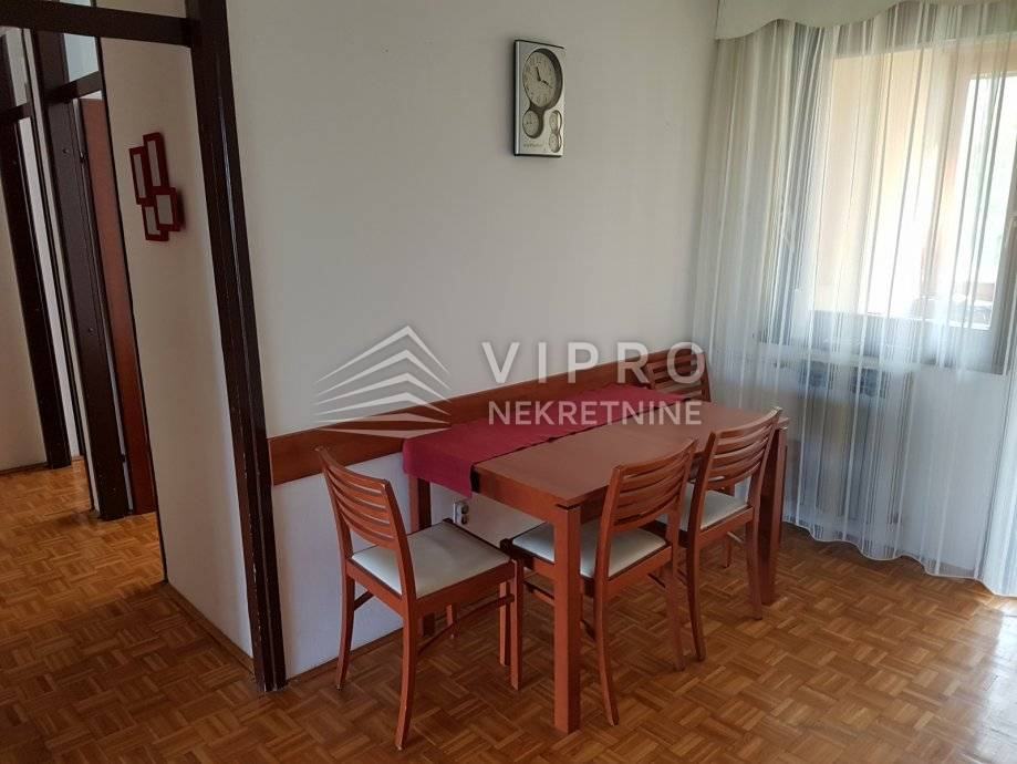 Iznajmljuje se 4-soban stan površine 86m2 na četvrtom katu dobre i održavane stambene zgrade s liftom. Stan se tlocrtno sastoji od ulaznog prostora, dnevnog boravka, kuhinje i blagovaonice, tri sobe, kupaonice te balkona površine 8m2. Stan se iznajmljuje namješten i opremljen svim potrebnim kućanskim aparatima. Neposredna blizina javnog prijevoza i svih ostalih sadržaja. Orijentacija stana: istok-zapad. Parking ispred zgrade.