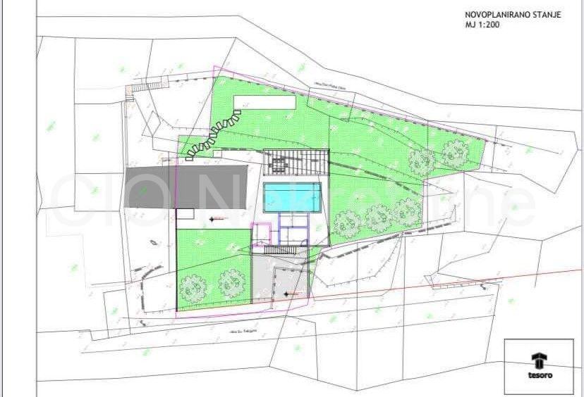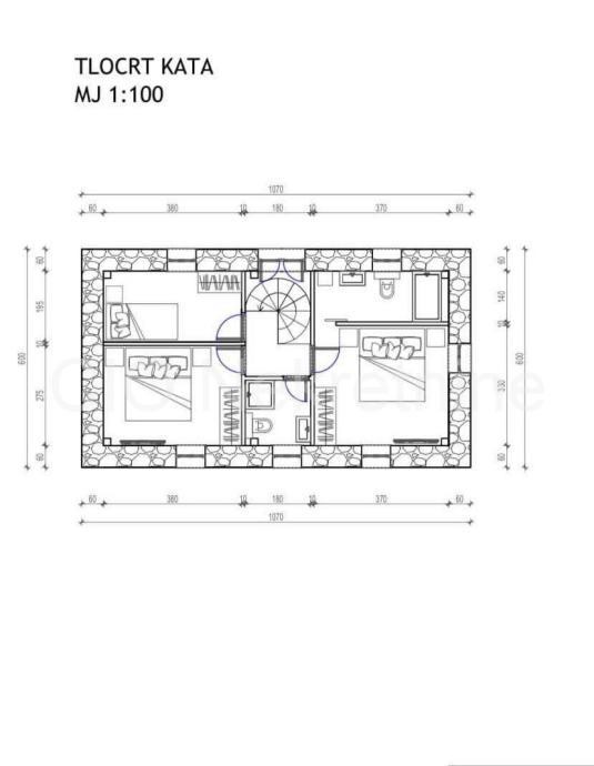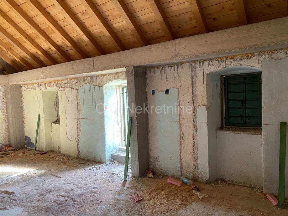 Kuća je obnovljena prošle godine: stavljen je novi krov, nove terase, vijenac, nove drvene dalmatinske škure kao i unutrašnje stepenice...