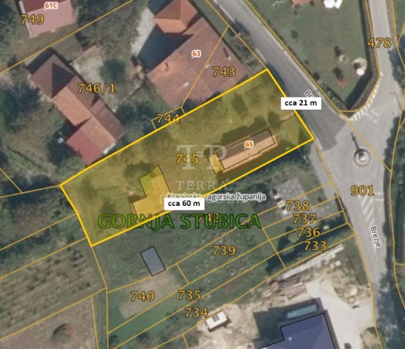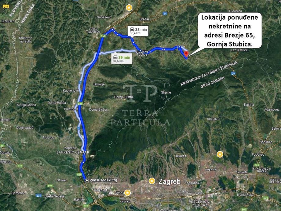 Na prodaju je stara zagorska "hiža" koja ima uporabnu dozvolu te priključak vode i struje. Površina okućnice je 1.112 m². Potrebno u cijelosti obnoviti, vjerojatno srušiti i na temelju snimke izvedenog stanja po želji izgraditi njenu repliku. Uz istočnu među potrebno je dozvoliti susjedima prolaz putem služnosti. Vlasništvo je čisto, 1/1, bez tereta. Na okućnici se nalazi i stara gospodarska zgrada (cca 65 m²). Moguće je kupiti i zemljište uz nju 3.200 m². Tu je nekada bio vinograd. U njemu je mala klet (11 m²). Od centra Gornje Stubice udaljenost je cca 1,5 km. Adresa kuće je Brezje 65, Gornja Stubica.