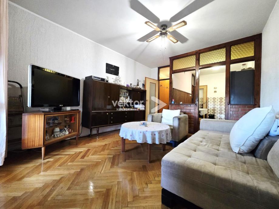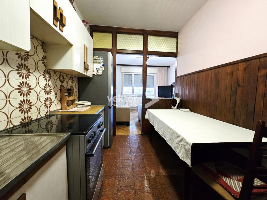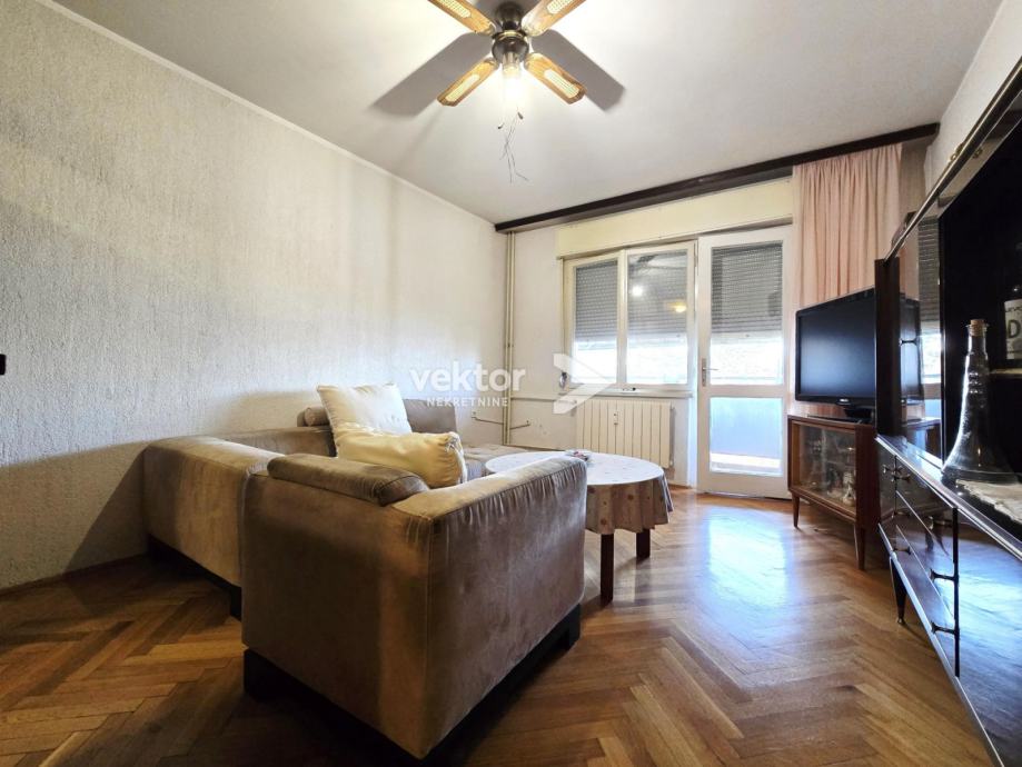 Stan je orijentiran jug–sjever, dnevni dio okrenut je prema jugu, obiluje prirodnim svjetlom te ima izlaz na lođu s lijepim i otvorenim pogledom na zelenilo, zgrade i more. Spavaći dio nalazi se na sjevernoj strani i sastoji se od dvije spavaće sobe. Kuhinja s blagovaonicom je praktična i ugodna, a kupaonica je adaptirana.