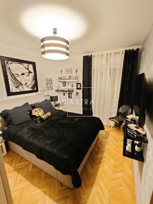 Kompletno je adaptiran 2018. godine što je uključivalo nove instalacije struje i vode, kompletno novu unutarnju i vanjsku stolariju (ALU-PVC s 3 komore i elektro podizačima na balkonskoj stijeni), novo kupatilo. Podovi su obloženi hrastovim parketom u sobama, blagovaoni i dnevnom boravku dok je u ostatku stana postavljena keramika. Grijanje je centralno na struju, a u dnevnom je dijelu postavljena i klimatska jedinica. Proveden je i gradski plin koji se koristi za kuhanje. Stan je kompletno namješten i opremljen i kao takav se i prodaje.