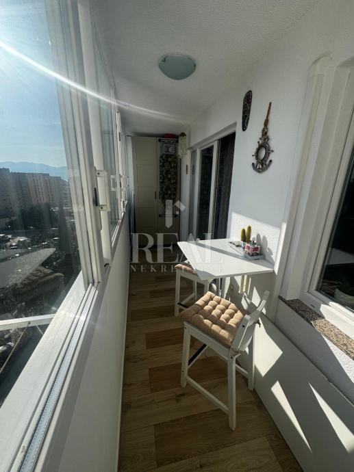 Posredujemo pri prodaji stana na 4. katu zgrade s novim krovom i termo fasadom kompletno adaptiran i moderno namješten stan koji se sastoji od južno orijentiranog dnevnog boravka s kuhinjom i blagovaonom, dvije spavaće sobe sjeverne orijentacije, kupaone, wc-a, hodnika i loggie s koje se pruža pogled na more i otoke. Stan je adaptiran 2020. godine pri čemu su kompletno izmijenjene instalacije struje i vode, kompletno izmijenjeni podovi i keramika, postavljena nova unutarnja i vanjska stolarija. U stanu je centralno grijanje putem Energa, a za hlađenje je ugrađena klima s inverterom u dnevnom boravku. U stanu ostaje veći dio namještaja ( kuhinja, dnevni boravak i ugradbeni ormari). Odlična pozicija na kojoj se nalazi ova nekretnina čini je poželjnom za život obitelji jer su u blizini osnovna škola, dječji vrtić, trgovina prehrambenim proizvodima, pošta, autobusna stanica linija 7 i 7A te drugi sadržaji. Također je zbog blizine KBC, studentskog kampusa te spoja na zaobilaznicu odlična nekretnina kako za dugoročan tako i za dnevni najam.