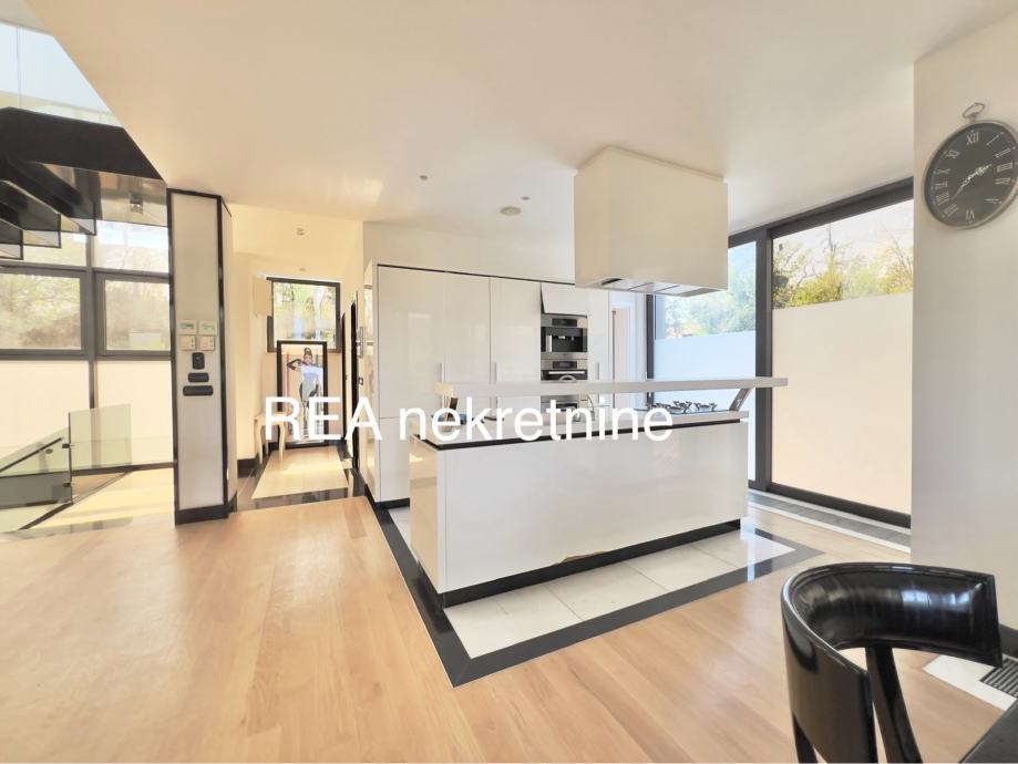 U suterenu vile nalazi se vešeraj, bazen s jacuzzijem, teretana i kupaonica, pružajući savršeno mjesto za opuštanje i rekreaciju.Prizemlje obuhvaća radnu sobu s toaletom, sobu s garderobom i kupaonicom, te dvije dječje sobe s dodatnom kupaonicom.