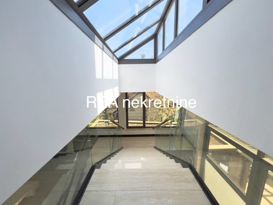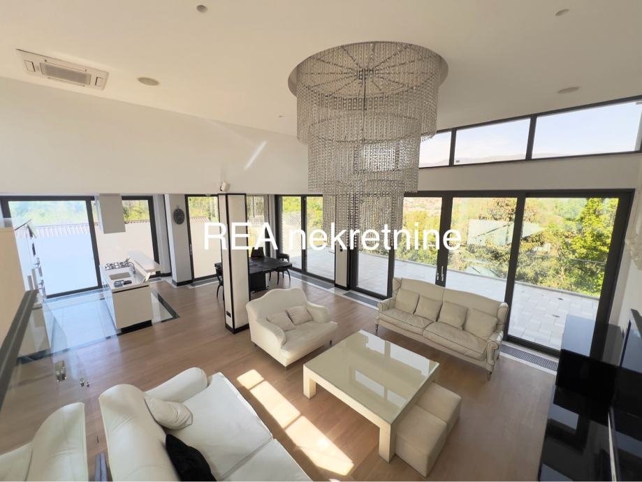 Na mirnoj lokaciji, Gornje Prekrižje, nalazi se ova prekrasna obiteljska vila površine 500m2, smještena na zemljištu od 650m2. Sagrađena 2008. godine, ova elegantna rezidencija okružena je brojnim luksuznim domovima.Sve prostorije u vili su klimatizirane, s grijanjem na plin, opremljene su smart home tehnologijom, ozvučenjem i vrhunskim materijalima poput travertinskog kamena.