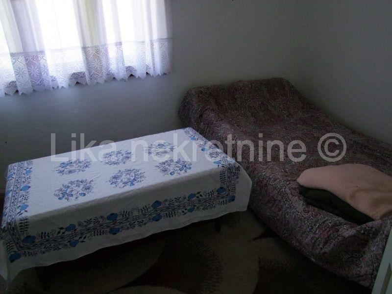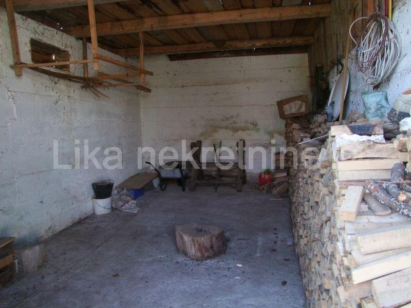 GORNJE VRHOVINE ( Vrhovine) - samostojeća obiteljska kuća 9x9,6m, visoka prizemnica s dvorišnim zgradama, voćnjakom (šljive, jabuke, orasi, trešnje) ispred i iza kuće. Kuća ima dva prilaza. Kuća je u gornjem dijelu useljiva i namještena te se sastoji od hodnika, kuhinje, dnevnog boravka, kupaonice s wc-om, dvije spavaće sobe. Prizemlje kuće ima zaseban ulaz, prizemlje je neizređeno, nalazi se u suterenu od jedne prostorije ispod cijele kuće ( ostava zimnice). Izmjenjena pvc stolarija. U dvorištu je ljetna kuhinja 5,5x3,5m sa pušnicom za meso, a nasuprot dvorišta je gospodarski objekt - štala, dimenzija 7x10,5m u čijem se prizemlju nalazi velika garaža, a u drugoj polovici je staja za blago - smještaj stoke. Iznad garaže i staje nalazi se prostor za skladištenje sijena. Između kuće i ljetne kuhinje je šterna ( bunar za kišnicu). Kuća je useljiva, vlasništvo uredno, bez tereta, svi objekti ucrtani. Okućnica 2.942 m2 s mogućnosti otkupa susjednih čestica. Struja, gradski vodovod, septička jama...