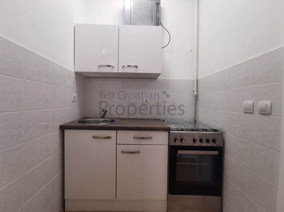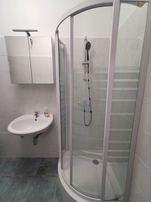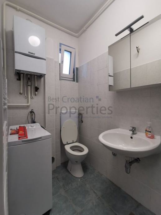 Iznajmljuje se prazan, osim što posjeduje kuhunjske elemente s štednjakom (pećnica i napa) te hladnjak s ledenicom, u kupaoni je tuš kabina, WC i perilica rublja.