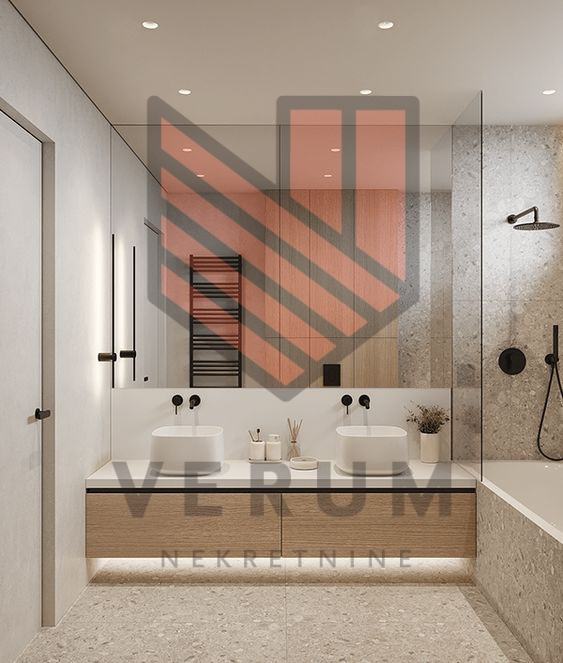 Stan će biti opremljen kombinacijom ventilirajuće i DEMIT fasade, hrastov parket prve klase, Marazzi industrija pločica, aluminij stolarija, dvoslojna i troslojna stakla, dizalica topline, ugradbeni kamin, Geberit i Lafuen program sanitarija.