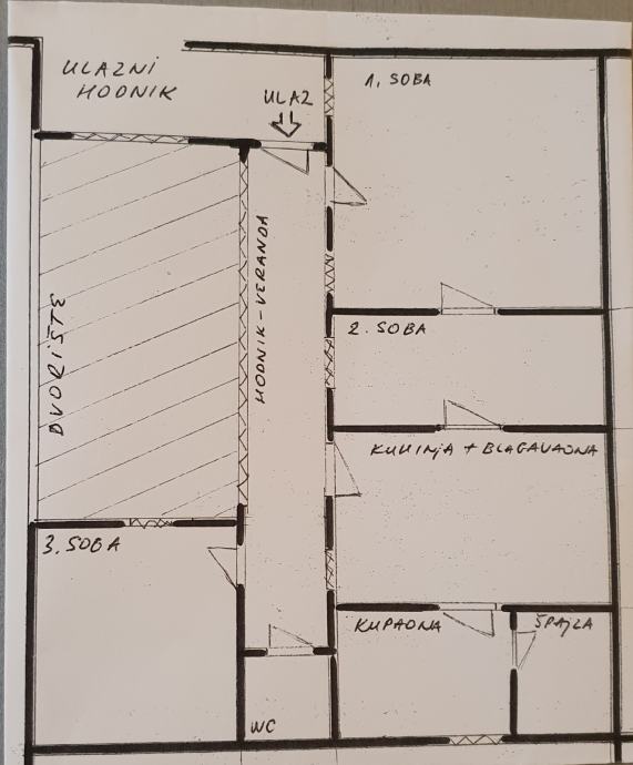 STAN SE SASTOJI OD 3 SOBE, KUHINJE/BLAGOVAONICE, KUPAONICE, ZAHODA, ŠPAJZE I VERANDE