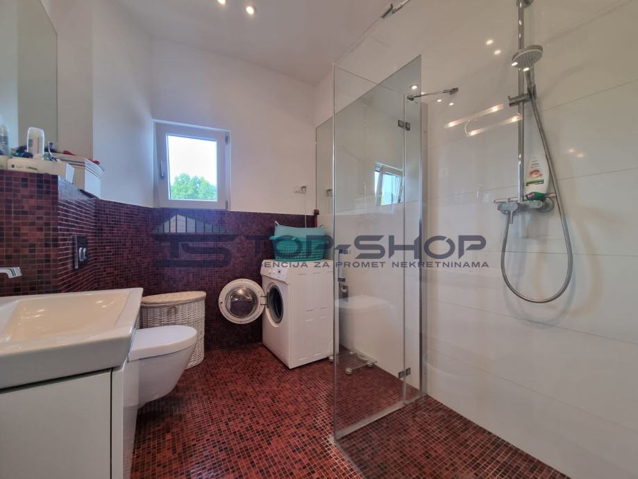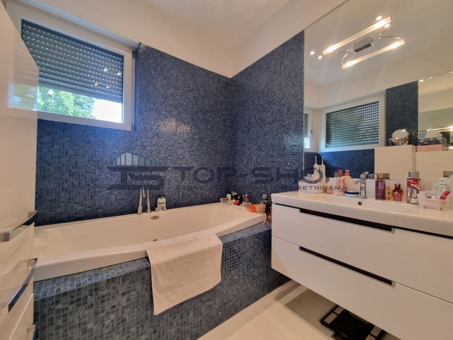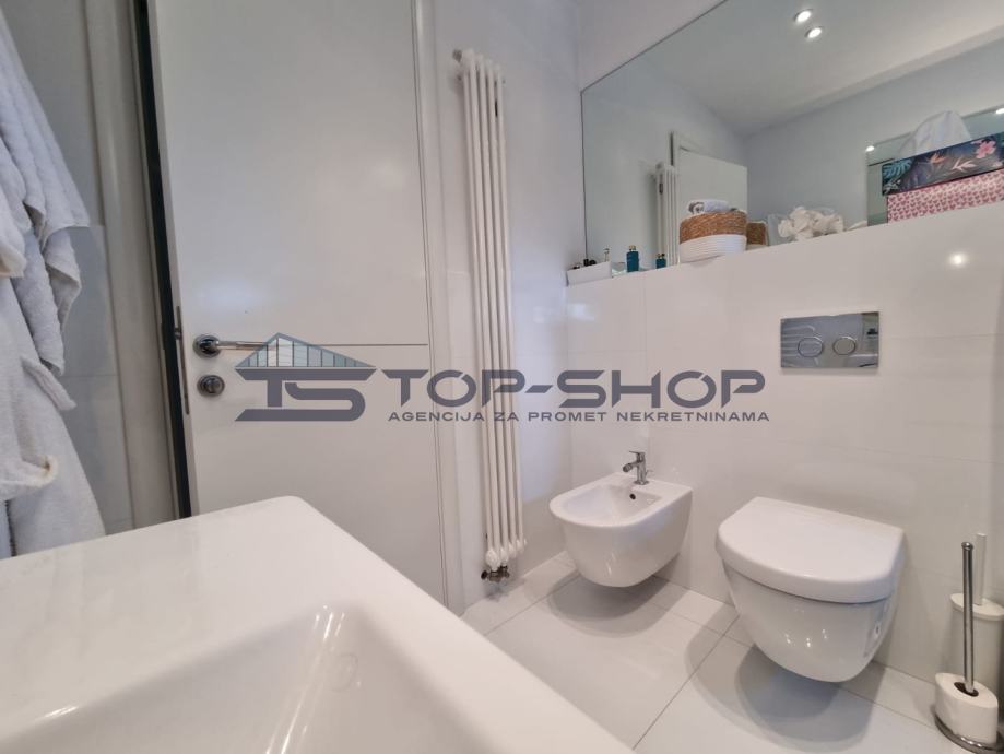 Nalazi se na mirnoj lokaciji svega par minuta od centra grada, odlično osvijetljen zbog svoje četverostrane orijentacije te velikih prozora sa puno dnevnog svijetla, klima, potpuno opremljena kuhinja, podno grijanje, ograđeno dvorište...