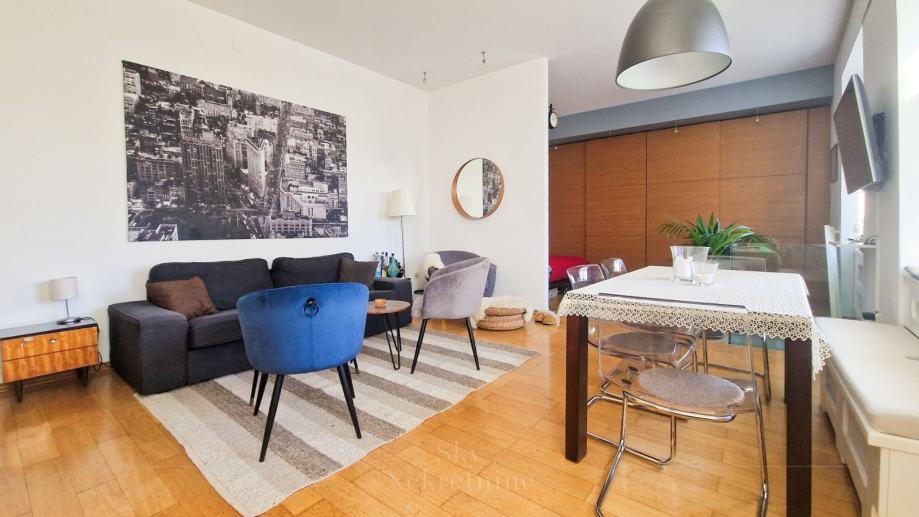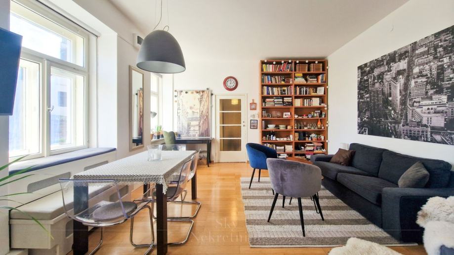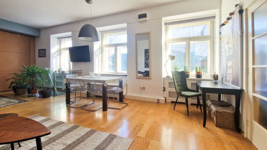 Agencija Sky nekretnine predstavlja dvosoban stan na izvrsnoj lokaciji, na Ilirskom trgu na Gornjem gradu. Stan se nalazi u visokom prizemlju zgrade izgrađene 1980. godine. Njegova površina iznosi 75,67 m2, a sastoji se od prostranog dnevnog boravka i blagovaonice, kuhinje, master spavaće sobe, dodatne kupaonice u suterenu te hodnika. Stan je orijentiran na mirnu dvorišnu stranu te je obogaćen s puno dnevnog svjetla.