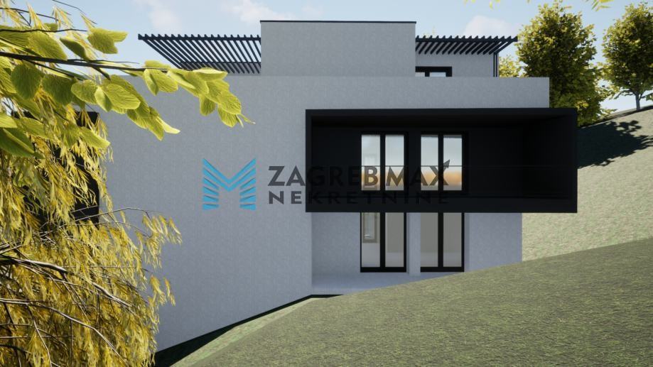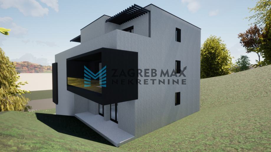 - Oblikovanje samostojeće zgrade prilagođeno je strmom terenu kojega slijedi, s blago ravnim krovom.