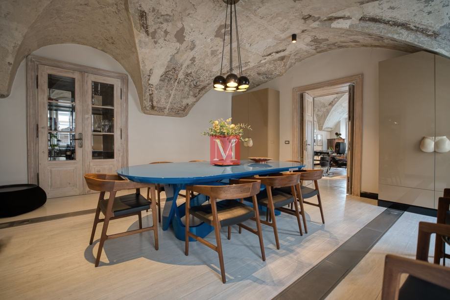 Svodovi, prirodni materijali i pažljivo očuvani arhitektonski detalji daju ovom prostoru poseban karakter i profinjenost. Stan je idealan izbor za one koji cijene kvalitetu, mir i visoku razinu komfora u povijesnom okruženju.