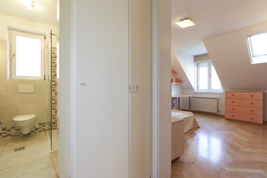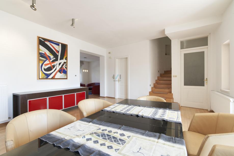 Prodaja, Gornji grad, strogi centar, vila, 300 m2 stambenog prostora, 2 etaže + podrum, parking, okućnica 500 m2. Prostrana, funkcionalna kuća sa visokim stropovima i velikim prozorskim oknima, otvoreni pogled na zeleni pojas i gradske krovove, potpuno mirno okruženje, svaka etaža može funkcionirati kao zasebna cjelina, podrum cca 45 m2 ima prozore i visinu od skoro 3m. 10 min pješice od Trga Bana Jelačića. Svi bitni sadržaji ( škole, vrtić, trgovine) unutar 5 min pješice.