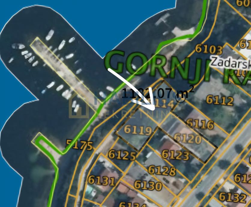 Smješteno u srcu netaknute prirode, ovo građevinsko zemljište s kućom pruža spektakularan pogled na Karinsko more – pravo skriveno blago Dalmacije. Blagi nagib terena omogućuje nesmetan panoramski pogled na modro more i šarmantni mol koji upotpunjuje idiličnu atmosferu ovog mirnog primorskog mjesta.