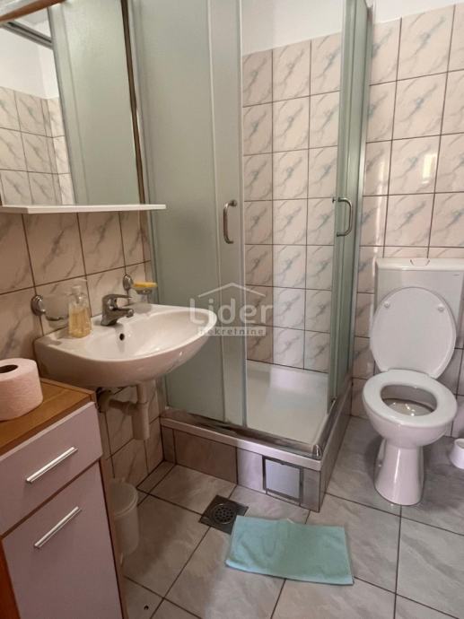 Na prizemlju se nalaze 2 apartmana po 30m2 sa pripadajućim terasama, s time da su isti trenutno spojeni u jedan veći apartman.