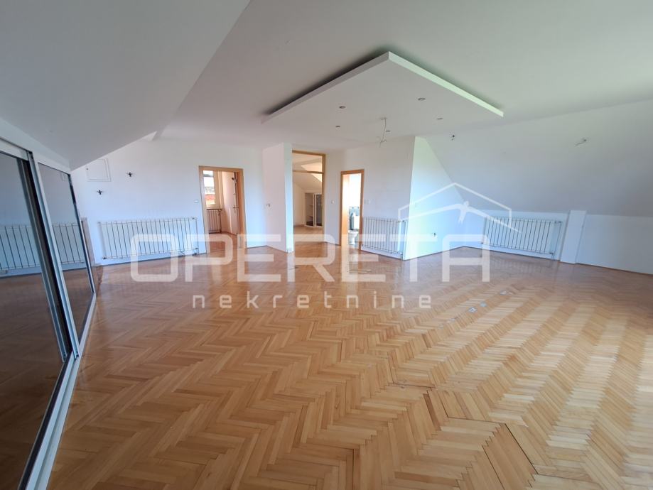 Kuća ima dva odvojena stana, u prizemlju 3 soban stan od 67m2, a na katu 103m2 open space-a i jedne sobe.