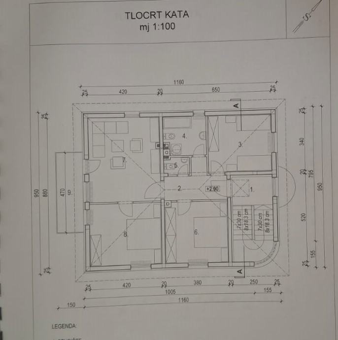Kat : provedena struja, voda i grijanje, na zidovima stavljena strojna glazura, istog rasporeda kao prizemlje, te pruža mogućnost dodatnog uređenja prema vlastitim željama.