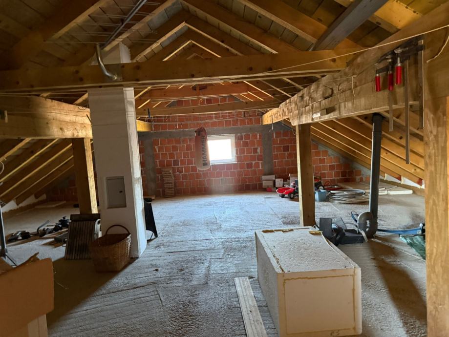 Potkrovlje, nešto manje kvadrature, također je u visokoj roh-bau fazi i nudi dodatni potencijal.