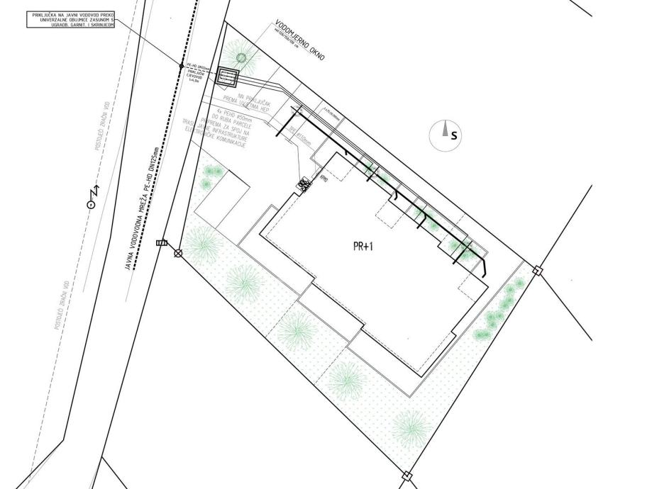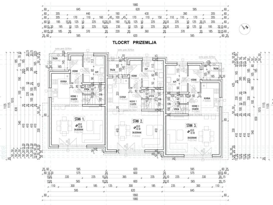 Prizemlja: ulaznog prostora, kupaonice, kuhinje, spremišta i dnevnog boravka sa blagovaonicom.