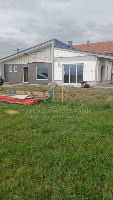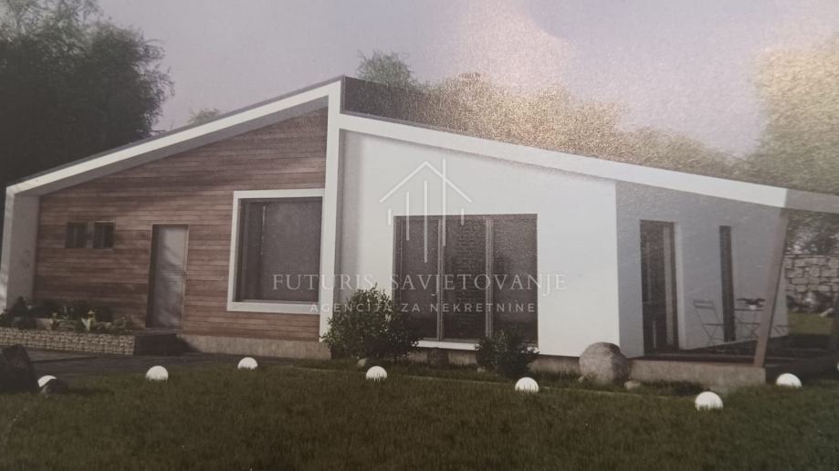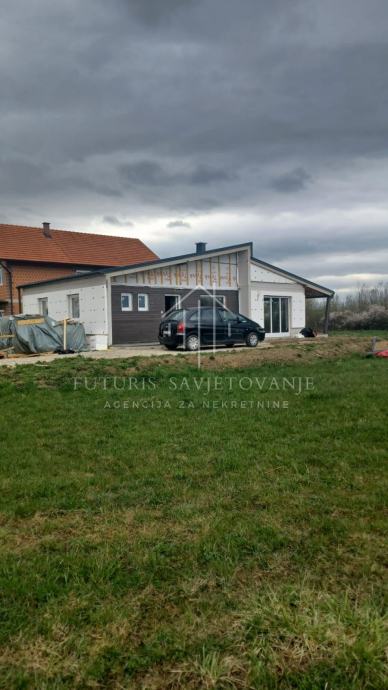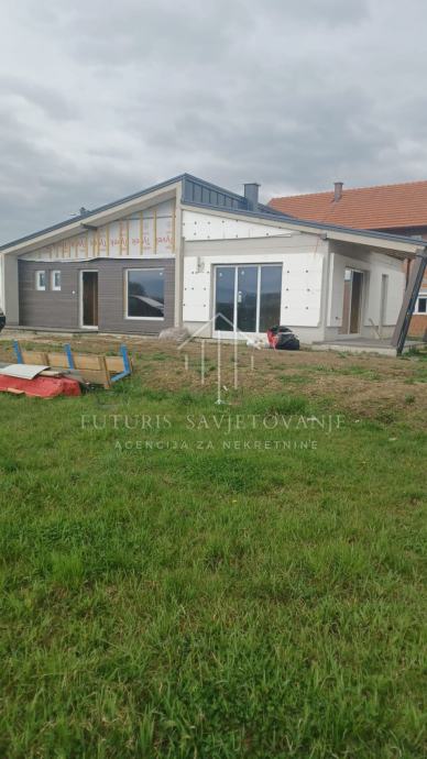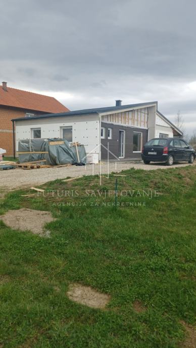 Prodaje se nova montažna kuća površine 116 m2 (prizemlje) na zemljištu od 785 m2.