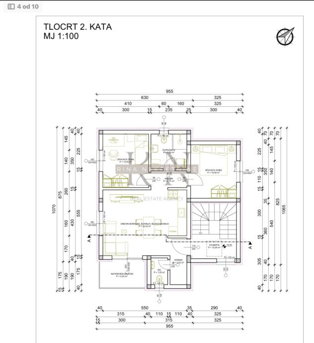 Tlocrt: ulazni hodnik sa idealnim prostorom za duboki ugradbeni ormar, gostinjski wc sa vlastitim prozorom, open space dnevni boravak s kuhinjom i blagovaonicom, izlaz na natkriveni balkon, odvojeni spavaći dio sa dvije spavaće sobe i kupaonicom sa vlastitim prozorom.