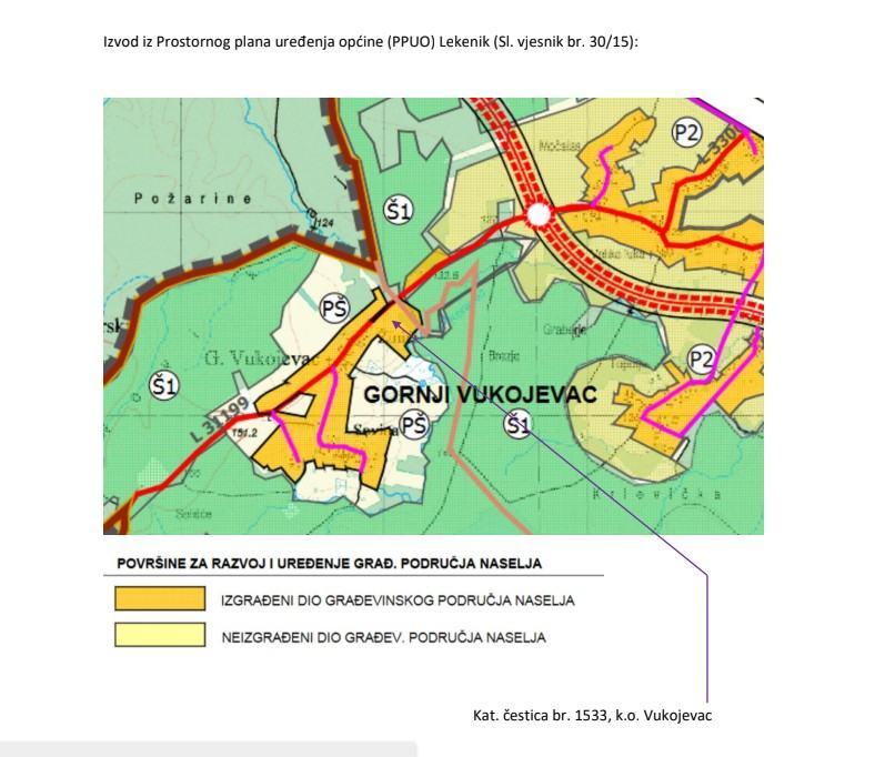 Zemljište je građevinsko prema prostornom planu, položaj iskazan u slici iz katastarskog plana, na površini bilo planirano izgradnja seoskog turizma.
