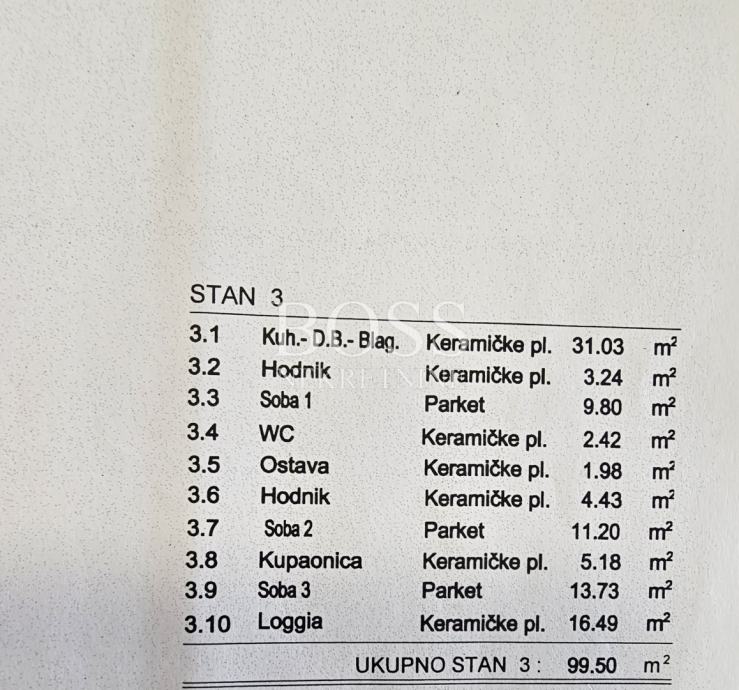 Gornji Zamet, u ponudi imamo odličan stan u novogradnji u zgradi s tri stana. Nekretnina se sastoji od kuhinje s dnevnim boravkom, tri spavaće sobe, toaleta, kupaone, dva hodnika, ostave, lođe, te pripadajuća dva parkirna mjesta. Stan se prodaje s kompletno novim namještajem. Etažno podno grijanje s dizalicama topline i termostatima, odlična oprema stana. Uredna vlasnička dokumentacija. Boss, kontakt: 091/379-1010 Dragan
