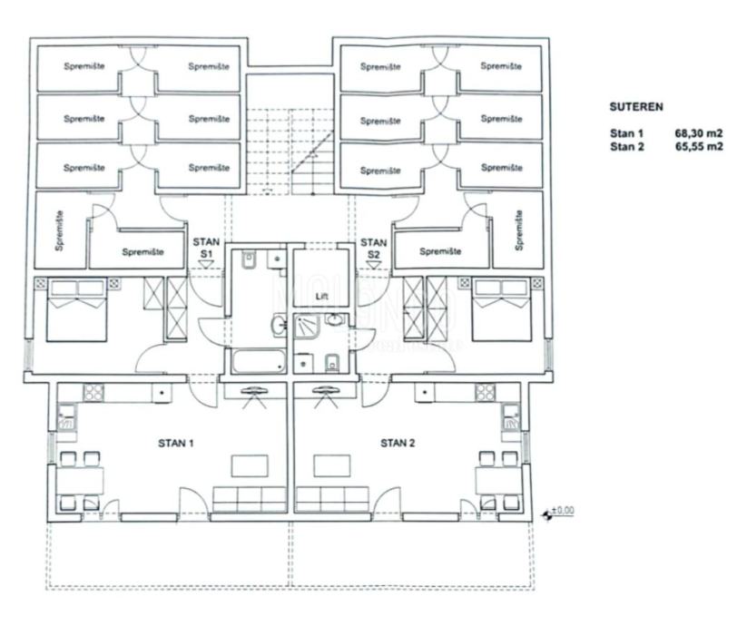 Stanovi su dvosobni osim suterenskih koji su jednosobni te zgrada ima lift za lakši pristup svim etažama .