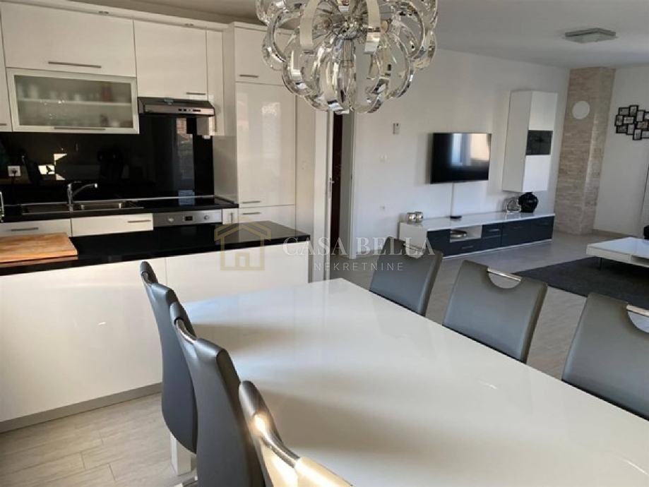 CASA BELLA iz ponude izdvaja odličan prostrani stan u zgradi novije gradnje na Gornjem Zametu. Stan je smješten na prvom katu zgrade, velik je 100m2, te se sastoji od ulaznog hodnika, tri spavaće sobe, kupaonice, toaleta, dnevnog boravka i kuhinje s blagovaonicom povezanih u open space prostor sa izlazom na prostranu terasu. Stanu pripada garažno mjesto, te parkirno mjesto, kao i spremište u suterenu zgrade. Stan je južne orijentacije, ima pogled na more i puno dnevnog svijetla i sunca kroz cijeli dan. Grijanje je podno, te ima instalirane jedinice klime. Idlična prilika za obitelji. Obratite nam se s povjerenjem.