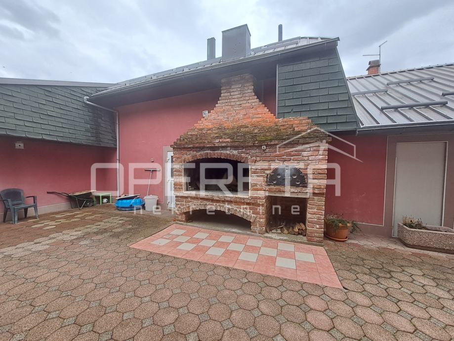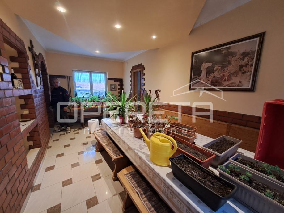 Na imanju je kuća s 5 etažiranih stanova ukupne korisne kvadrature 404m2 i prodaje se zajedno s poslovnim prostorom. Jedan od stanova može biti u funkciji dućana s izlogom i ulazom s ceste ili uredske prostorije. Stanovi su kompletno opremljeni i namješteni i sav namještaj je u cijeni. Na 12 min od Laništa i na 15 min od Velike Gorice.