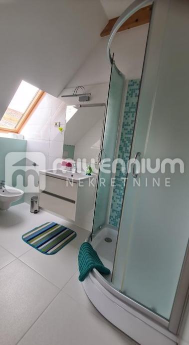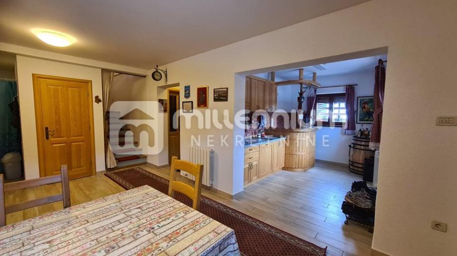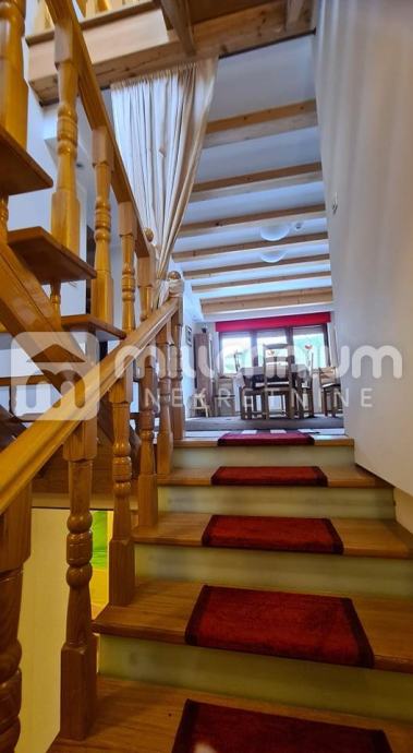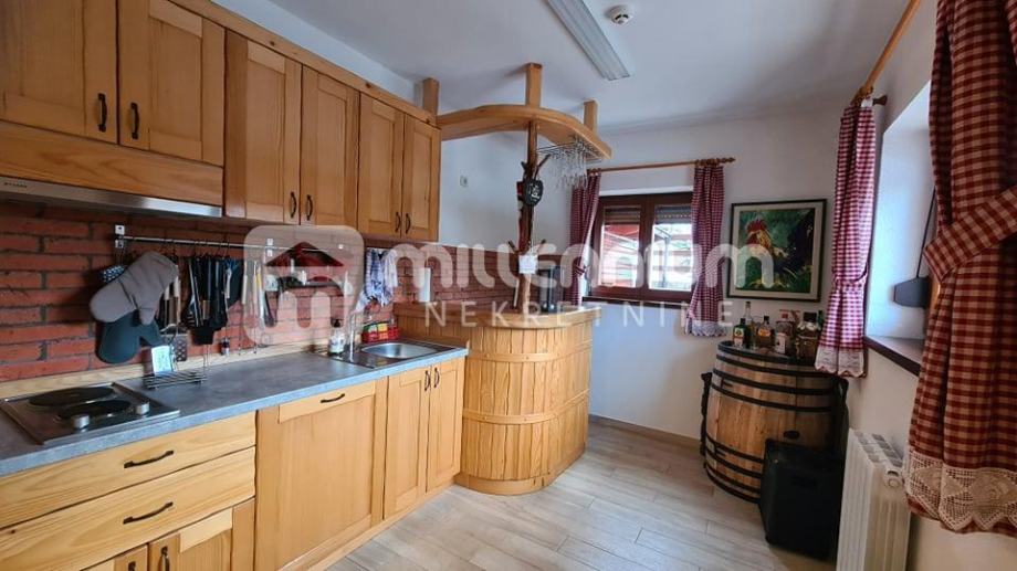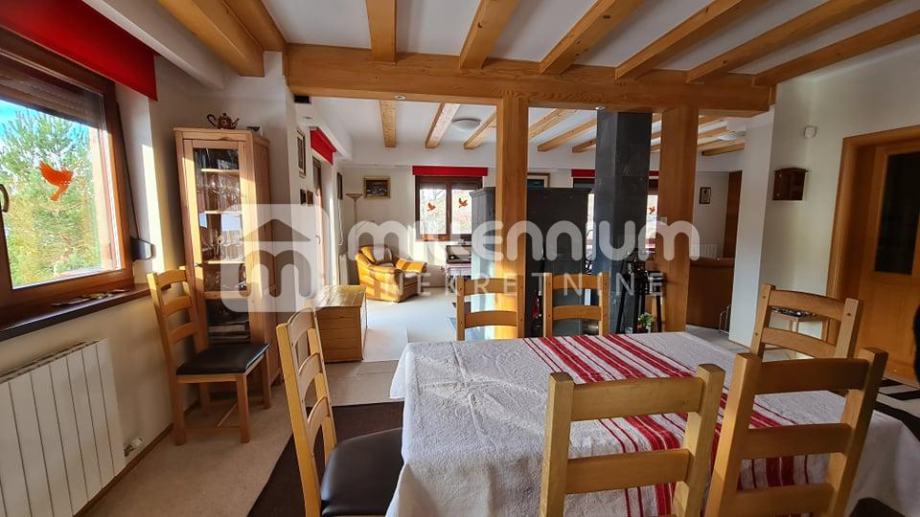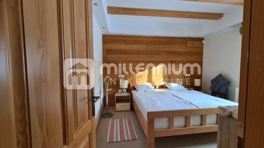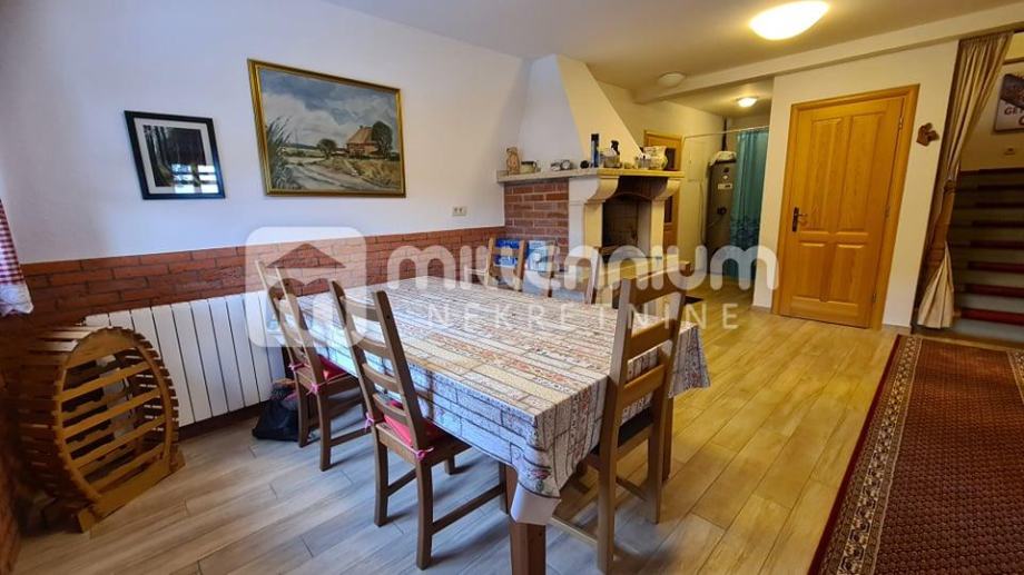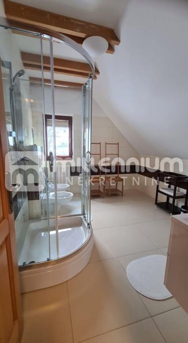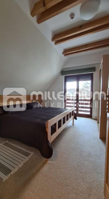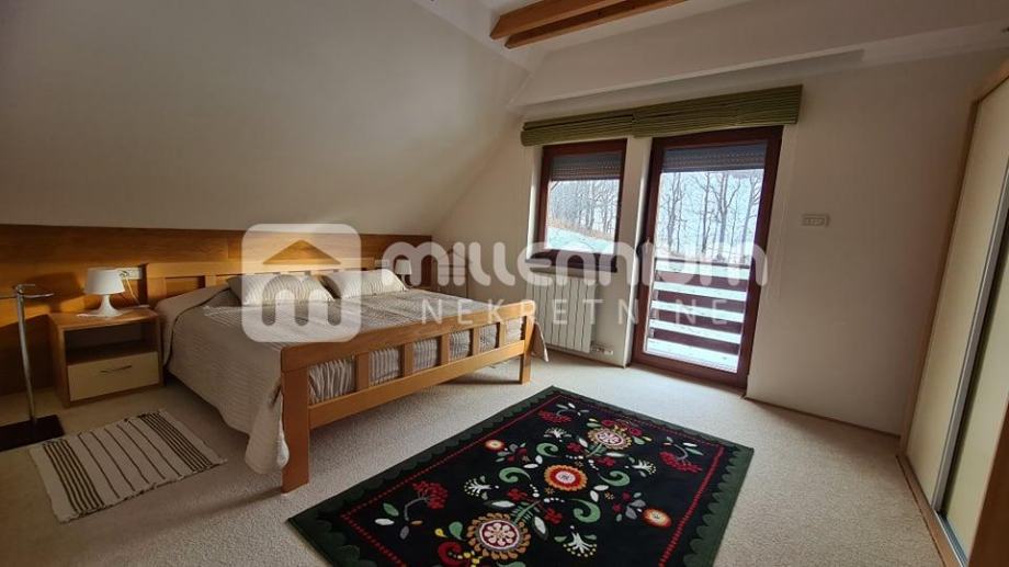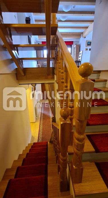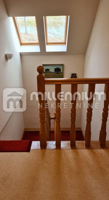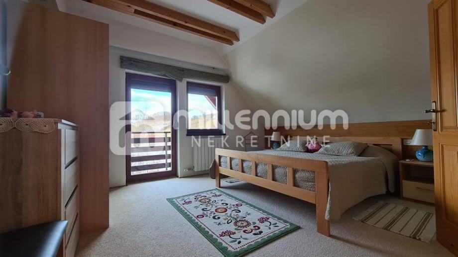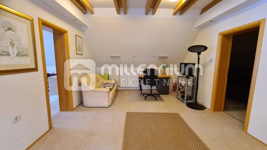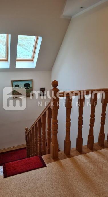 U suterenu je garaža, kuhinja, blagovaonica, kupaonica i sauna, u prizemlju je dnevni s blagovaonicom, spavaća soba, kuhinja i kupaonica dok su visokom potkrovlju 3 sobe, radni dio i kupaonica.
