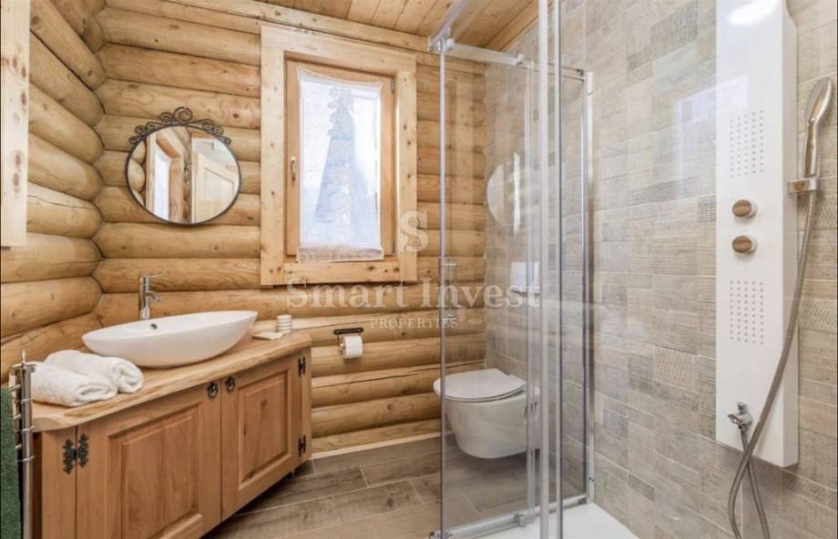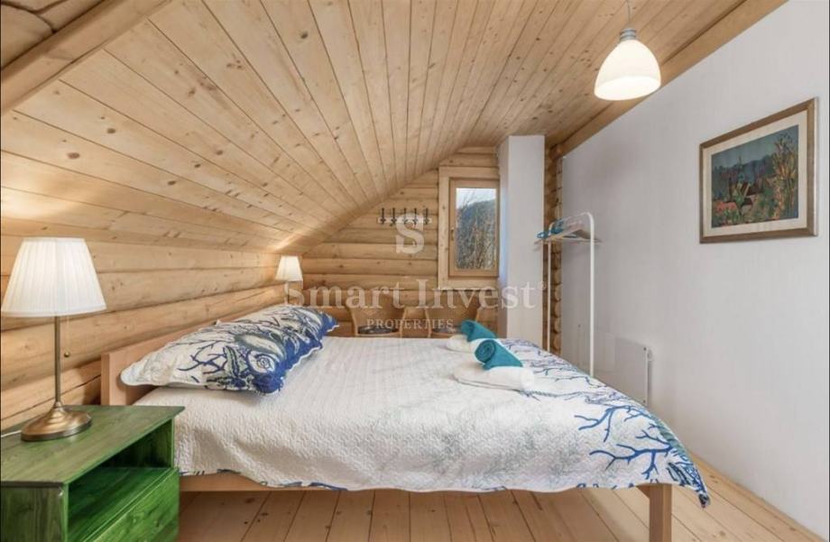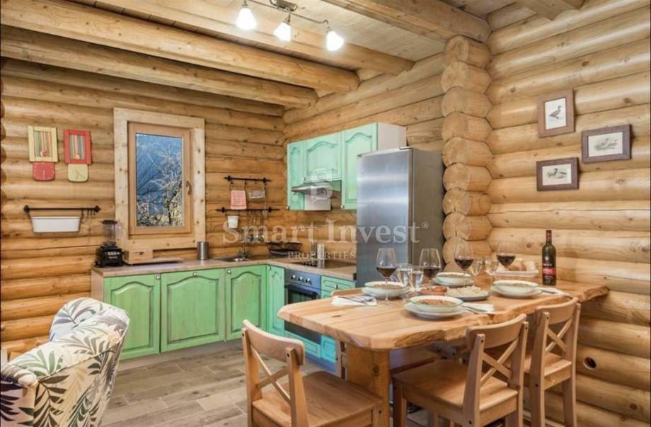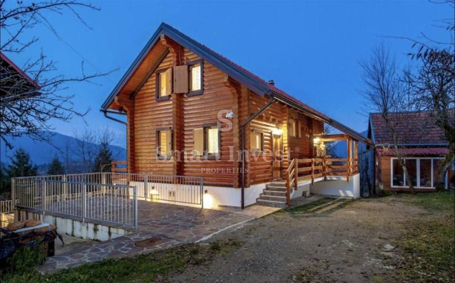 Kuća povšrine 250 m2 smještena je na zemljištu površine 600 m2. Izrađena je 2018. godine od lokalnih majstora, isključivo u drvu, pruža komfort za 8-12osoba.