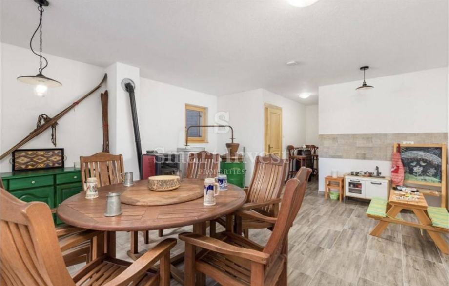 Svakako glavna prostorija za druženje je veliki dnevni boravak iz kojeg se pruža pogled na planine Gorskog Kotara prema kupskoj dolini. Grijati će vam dušu i tijelo kaminom, i svojom izuzetno intimnom atmosferom punom jedinstvenih i starinskih detalja, uklopljenih u novo uređeni komforni interijer.