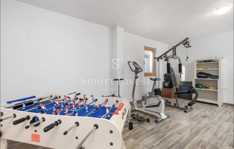 Kuća ima 4 prostrane sobe i 3 kupaonice, prostran dnevni boravak s kuhinjom i blagovaonicom, terasu, konobu za druženje, teretanu, igraonicu za djecu i odrasle.