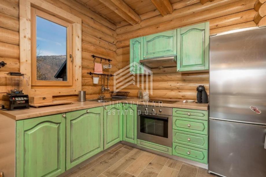 Izgrađena u potpunosti od drveta, kuća odiše toplinom, autentičnošću i planinskim šarmom, pružajući savršen spoj tradicije i moderne udobnosti. Prostire se na tri etaže i koncipirana je kao funkcionalan, luksuzan prostor za boravak tijekom cijele godine.