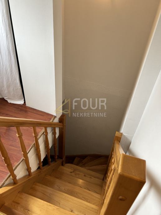 Drvene stepenice vode na gornju etažu gdje su smještene još dvije spavaće sobe i kupaonica.