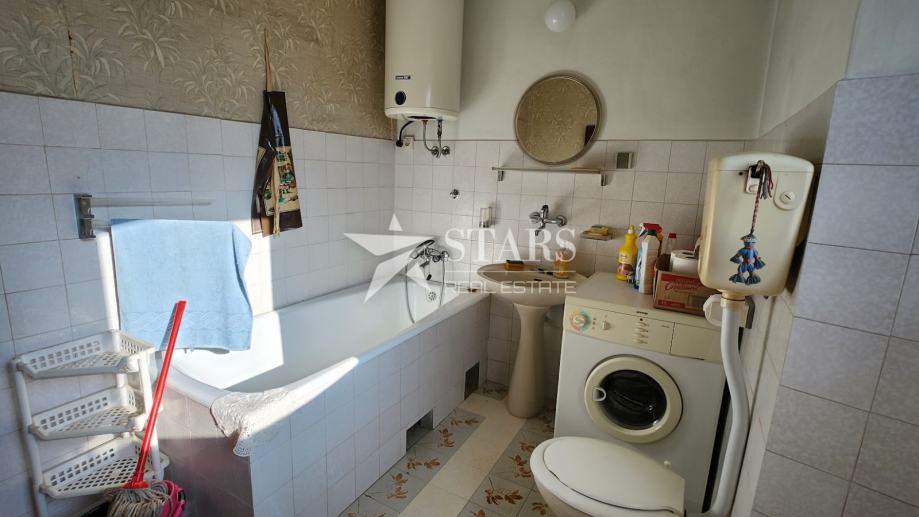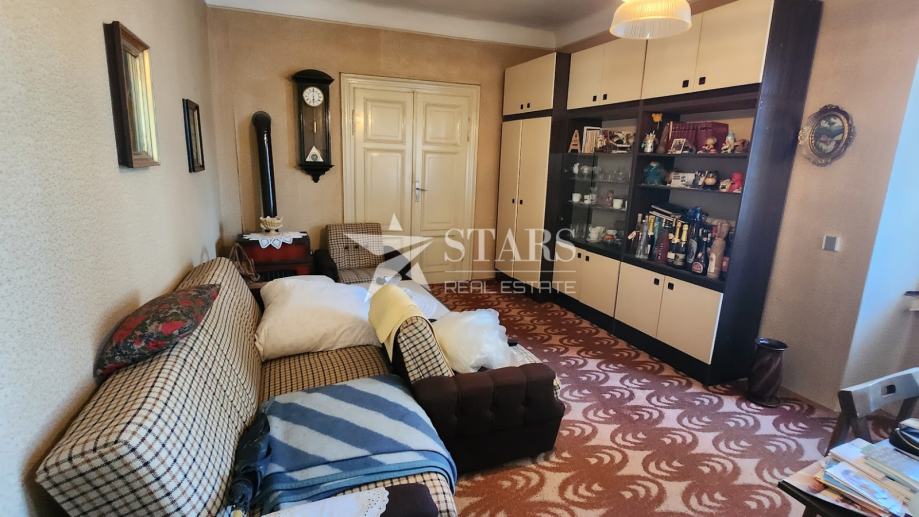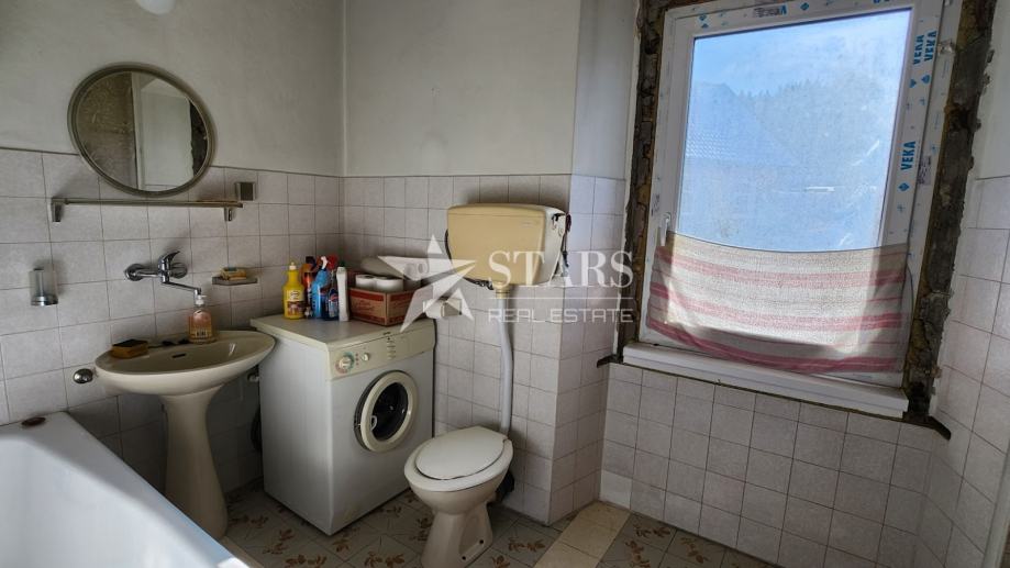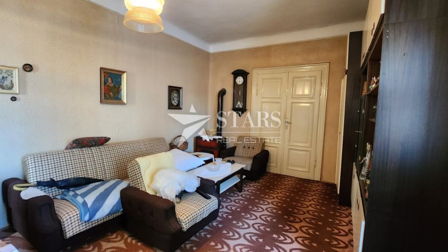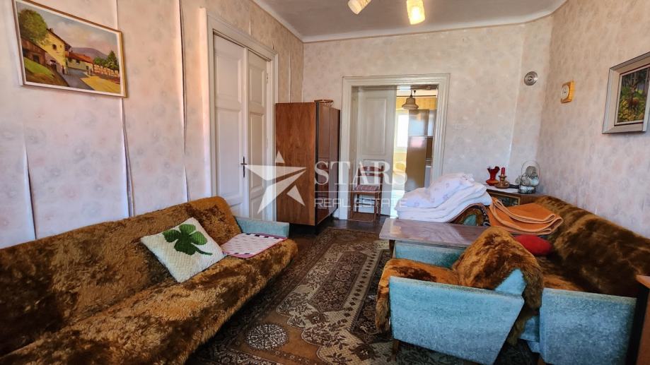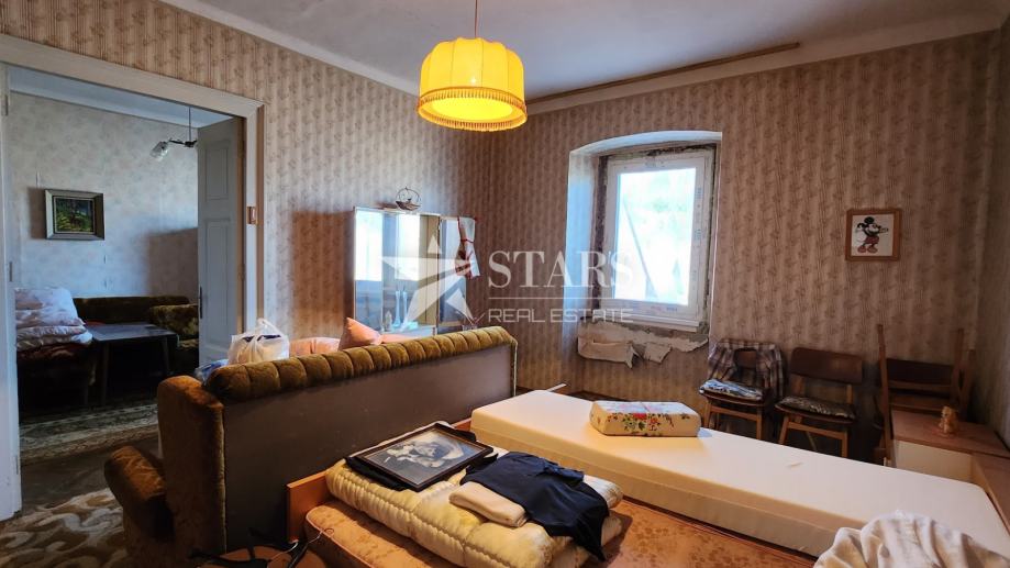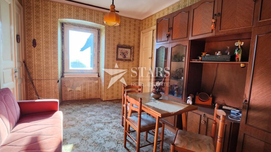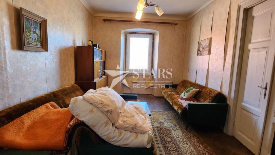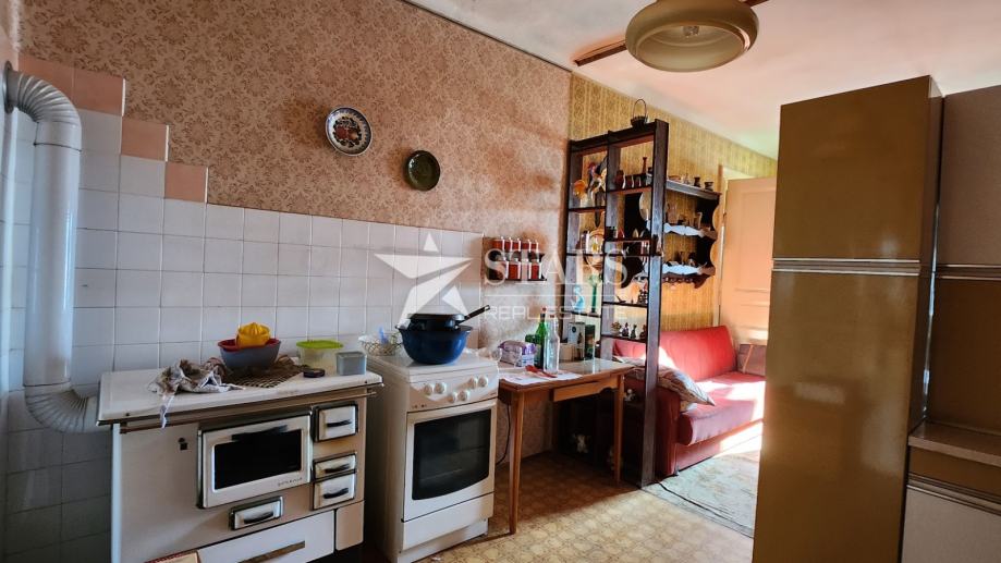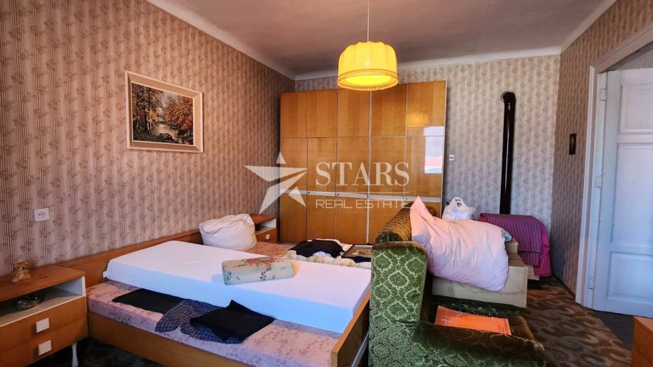 Trosobni stan na 1. katu koji se sastoji od tri sobe, kuhinje sa dnevnim boravkom i blagovaonskim dijelom, kupaonice i manje ostave. Stanu pripada drvarnica u podrumskom dijelu zgrade, te visoki tavanski prostor površine cca 55 m2.