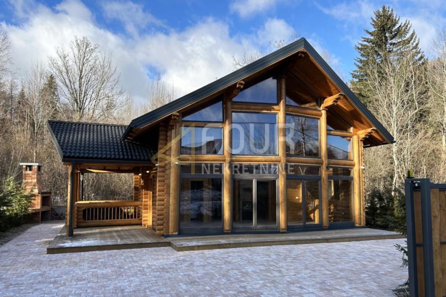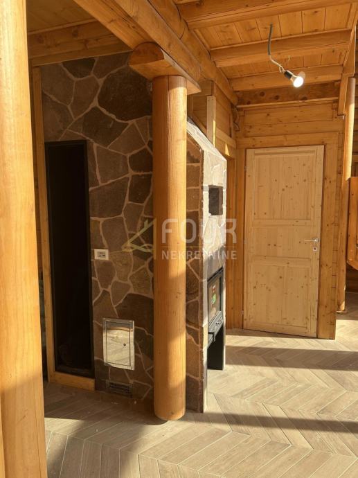 Kuća je izgrađena od kvalitetnog drva, sa zidovima od smreke debljine 23 cm, što joj daje posebnu čar i prirodni izgled. Grijanje je osigurano klasičnim pećima na drva/pelete, a dodatno je instaliran klima uređaj za ugodnu temperaturu tijekom cijele godine.