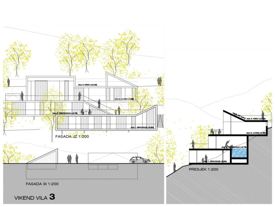 Zemljište 2140 m2 sa projektom za vilu prije parcelacije može se prilagoditi zahtjevu kupca. Srazmjerno kupovini udjela u građevinskom zemljištu ili kupovinom cijelog zemljišta od 10673 m2 cijena se može dogovarati.