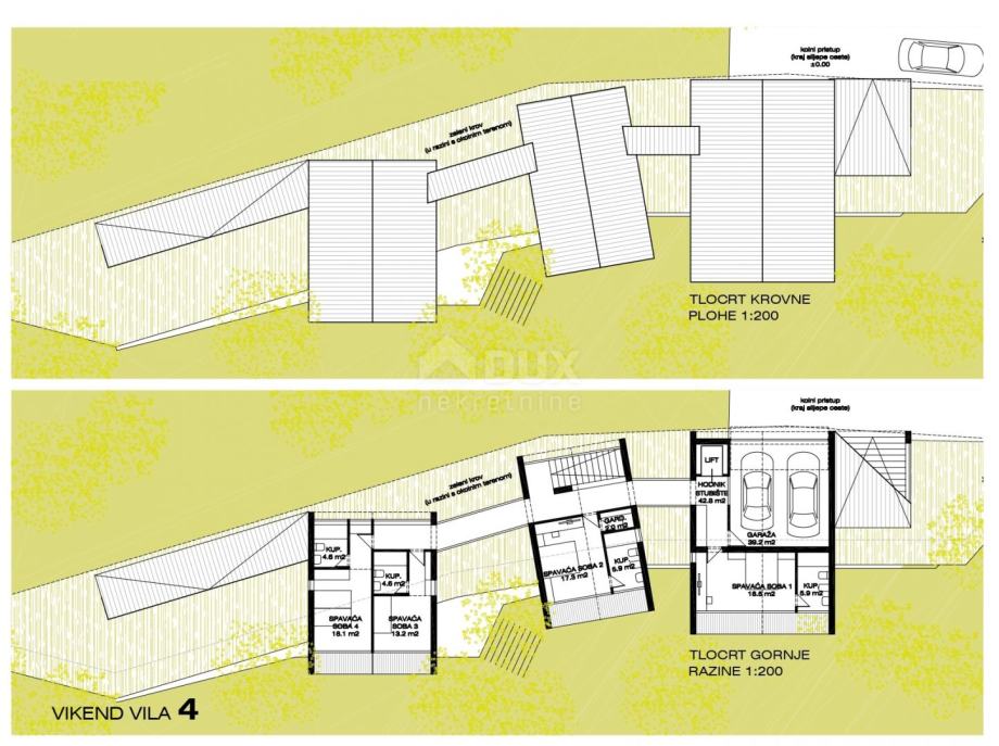 Zemljište 1197 m2 sa projektom za vilu, prije parcelacije može se prilagoditi zahtjevu kupca. Srazmjerno kupovini udjela u građevinskom zemljištu ili kupovinom cijelog zemljišta od 10673 m2 cijena se može dogovarati.