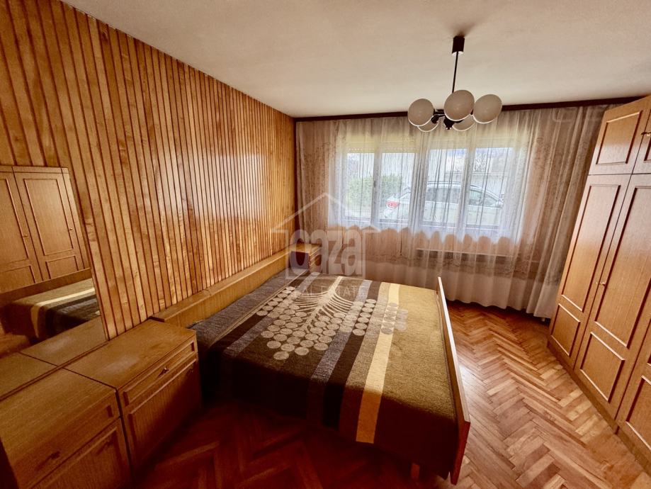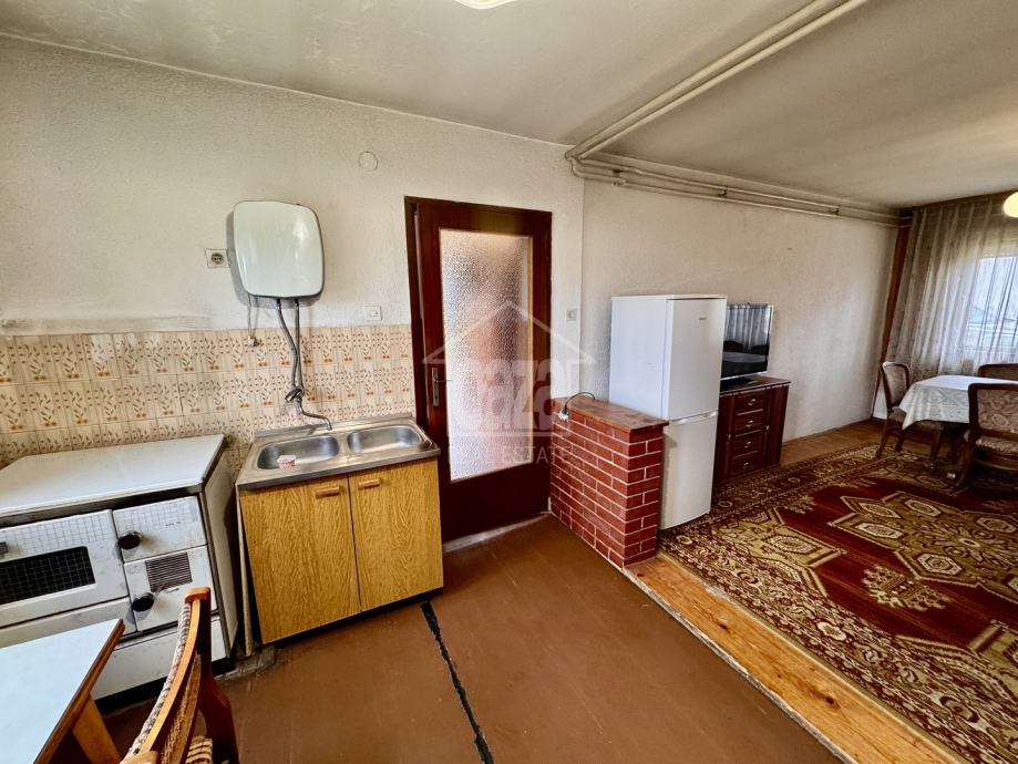 U prizemlju je jedna spavaća soba, kuhinja, dnevni boravak i wc, na katu su tri spavaće sobe, kupaonica sa toaletom i balkon.