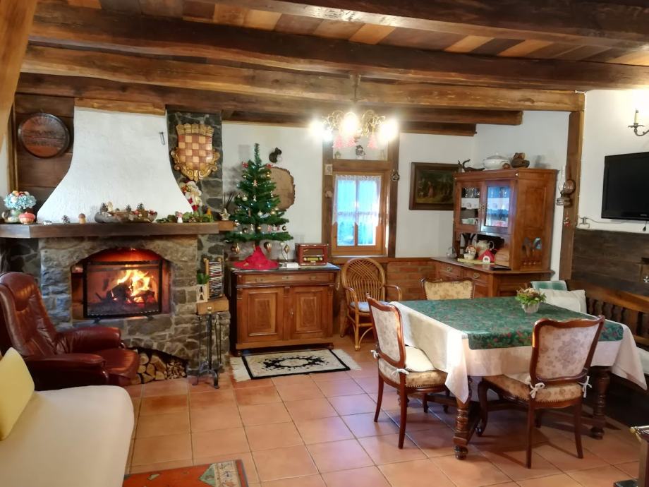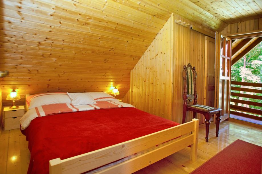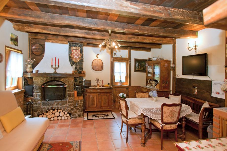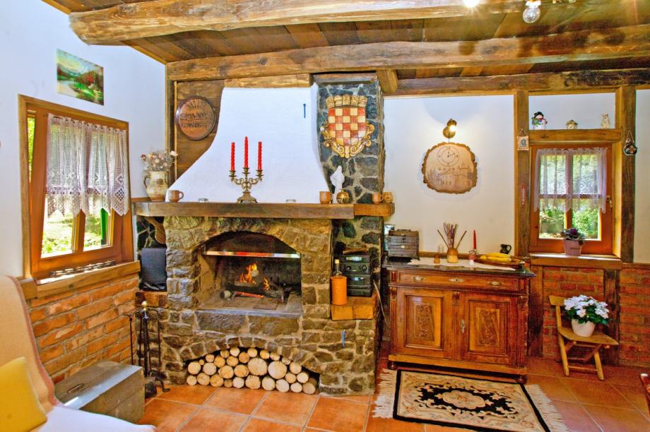 U prizemlju se nalazi kuhinja s dnevnim boravkom kojeg krasi veliki kamin te kupaonica. Na katu su dvije spavaće sobe i WC. U podrumu su dvije manje i jedna velika prostorija koje služe kao spremište. Grijanje je na drva.