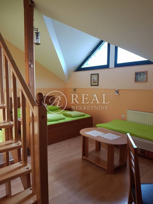 Gorski Kotar, hotel-restoran, novije gradnje, posjeduje 31 spavaću sobu, 67 ležajeva, restoran sa 80 jedećih mjesta. Hotel posjeduje konferencijsku salu, teretanu i wellness sa masažom. Privatni parking za autobus i posebno za automobile. Hotel ima centralno grijanje, solarno i toplinske dizalice. Uz hotel ide i kuća od 198m2 (uračunato u ukupnu kvadraturu od 1633 m2), P+1 sa 2 stana i poslovnim prostorom, te garaža.