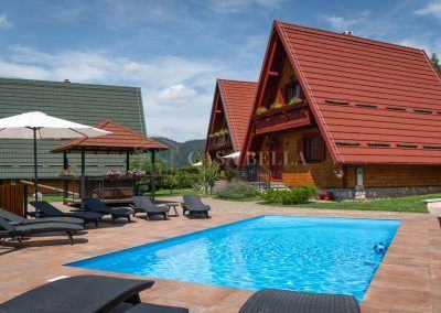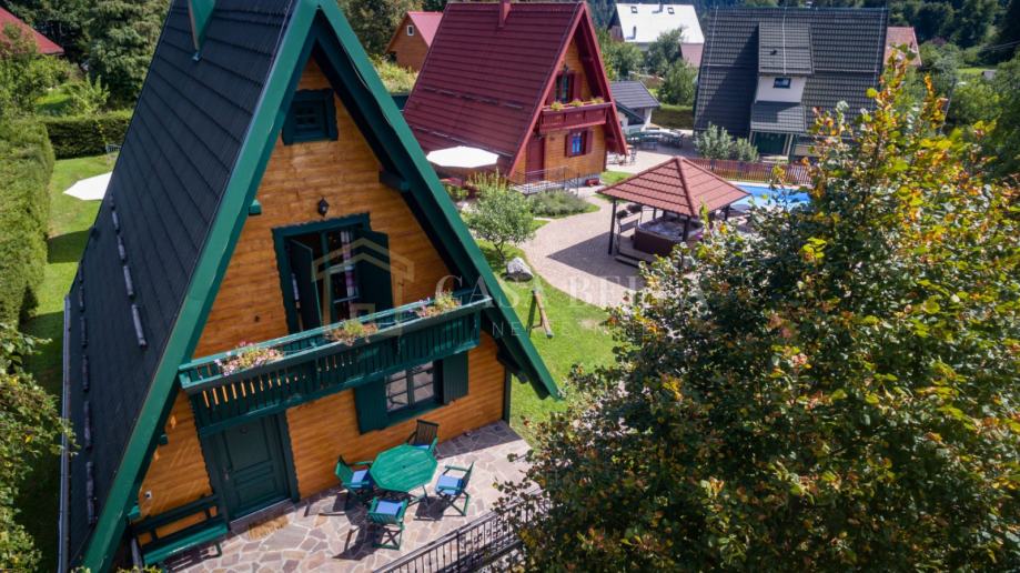 Casa Bella nekretnine iz ponude izdvajaju kompleks od četiriju odmorišnih kuća u Gorskom kotaru. Nekretnine se nalaze na sat vremena vožnje od Rijeke te sat i četrdeset minuta od Zagreba. Četiri kuće dizajnirane su u alpskom stilu, kvalitetno su napravljene i ukusno su uređene. Tri manje kuće imaju površinu od 70 m2, a veća obuhvaća 160 m2. Kuće su dio dobro uhodanoga turističkoga posla koji novi vlasnik može preuzeti. Kompleks ima svoju saunu i grijani bazen. Iako se svaka kuća vodi u zemljišnim knjigama kao zasebna nekretnina, posjed se prodaje samo u cjelini.