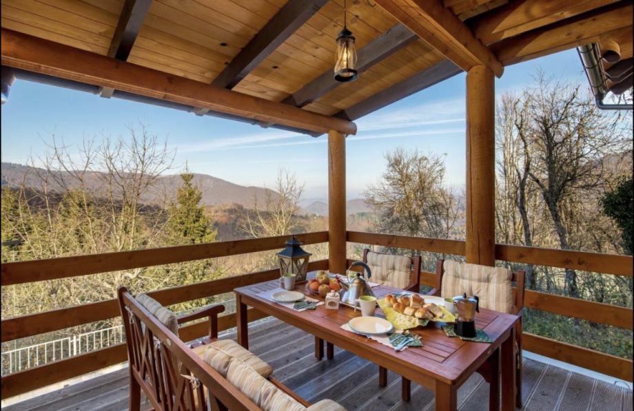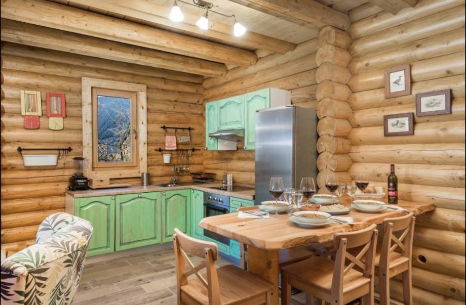 Izrađena rukama lokalnih majstora, isključivo u drvu iz okolice, te se uklapa u prostor oko sebe kako materijalima, tako i izgledom a pruža komfor za 8-12osoba.