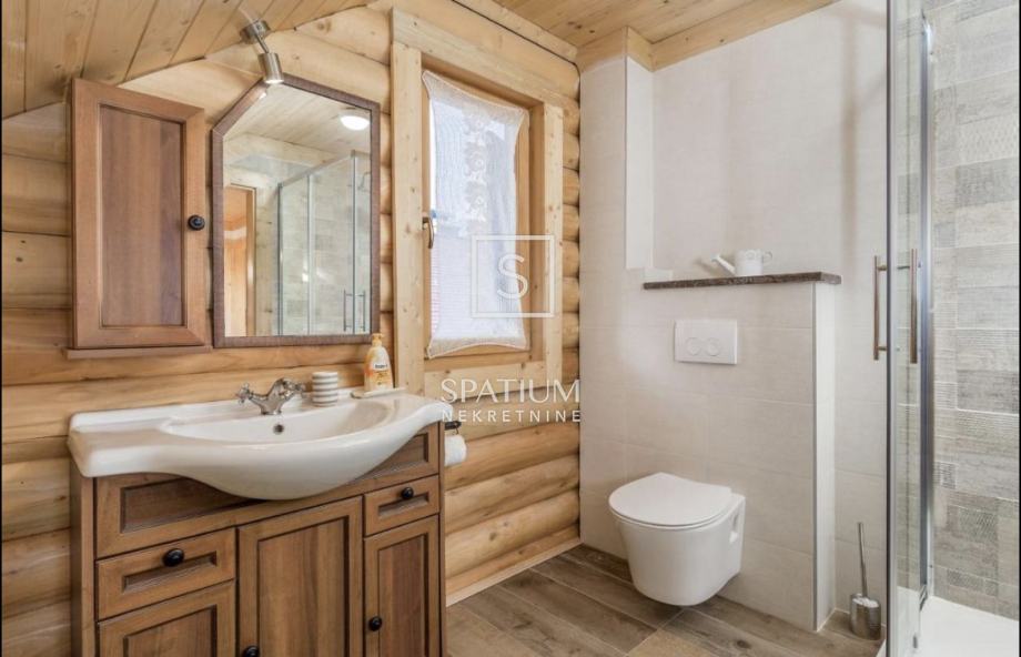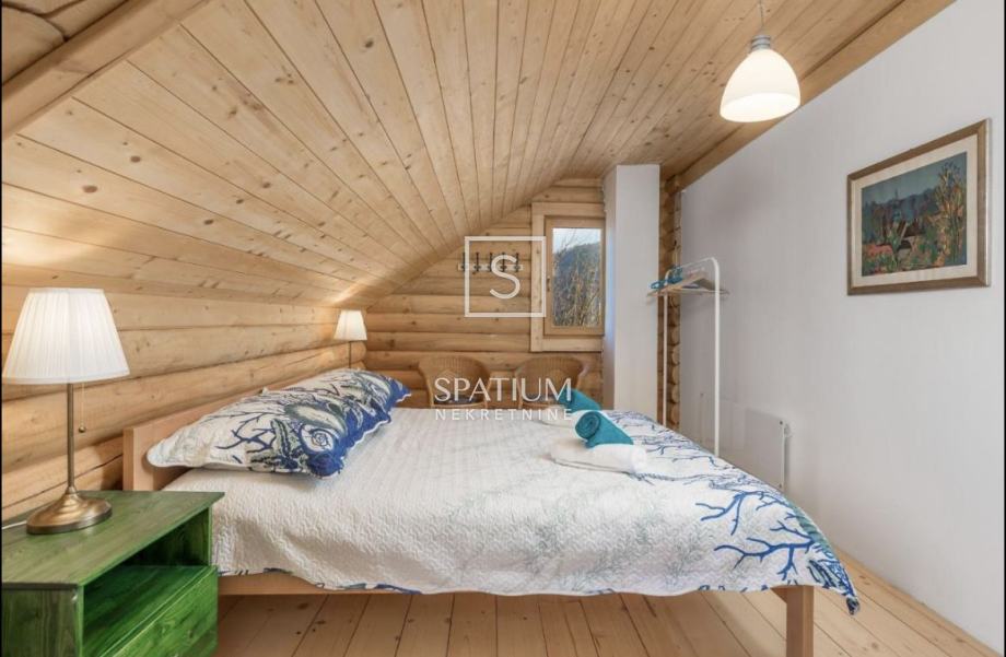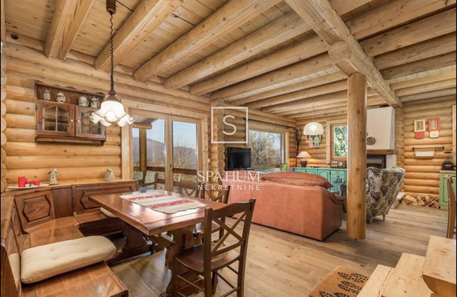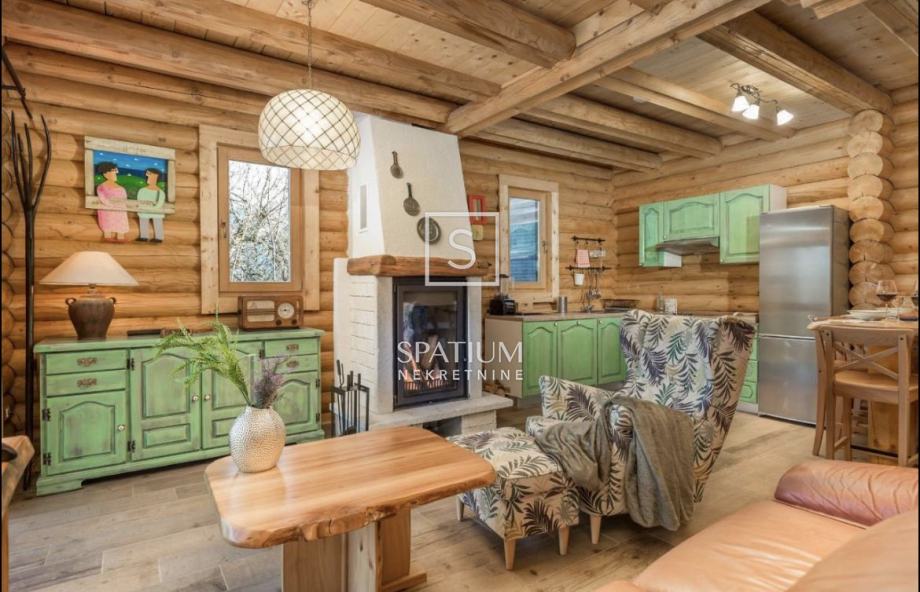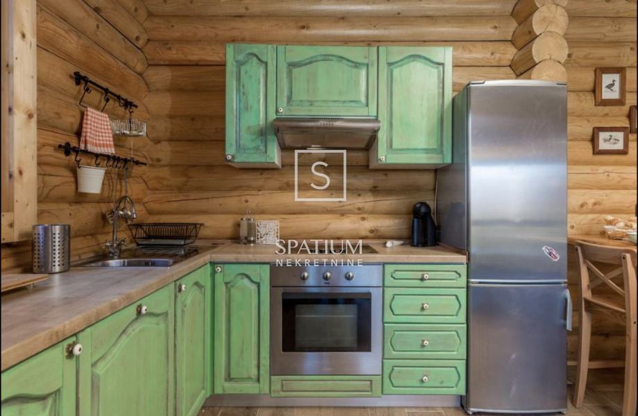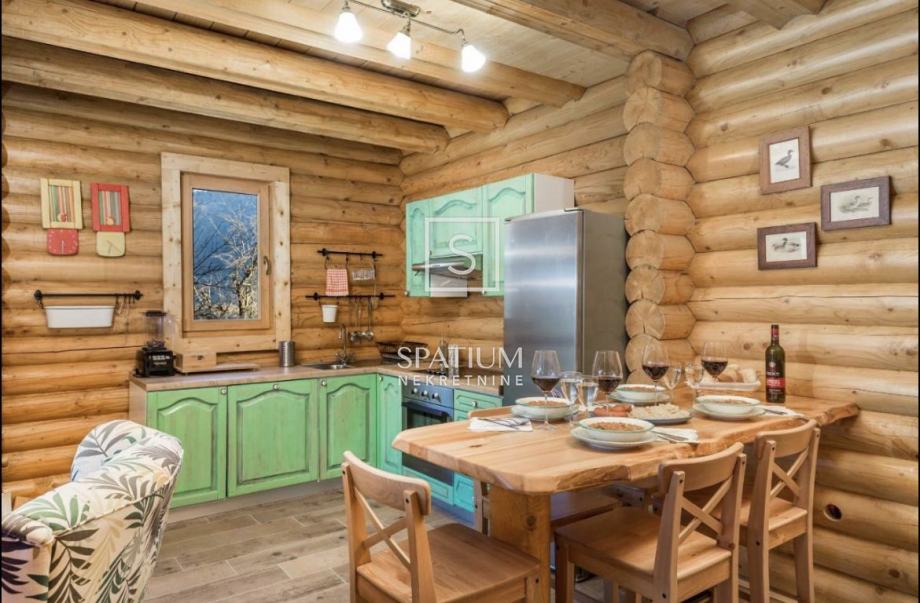 Izrađena rukama lokalnih majstora, isključivo u drvu iz okolice te se uklapa u prostor oko sebe kako materijalima, tako i izgledom a pruža komfor za 8-12 osoba.