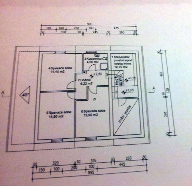 - potkrovlje : 3 sobe, kupaonica, hodnik