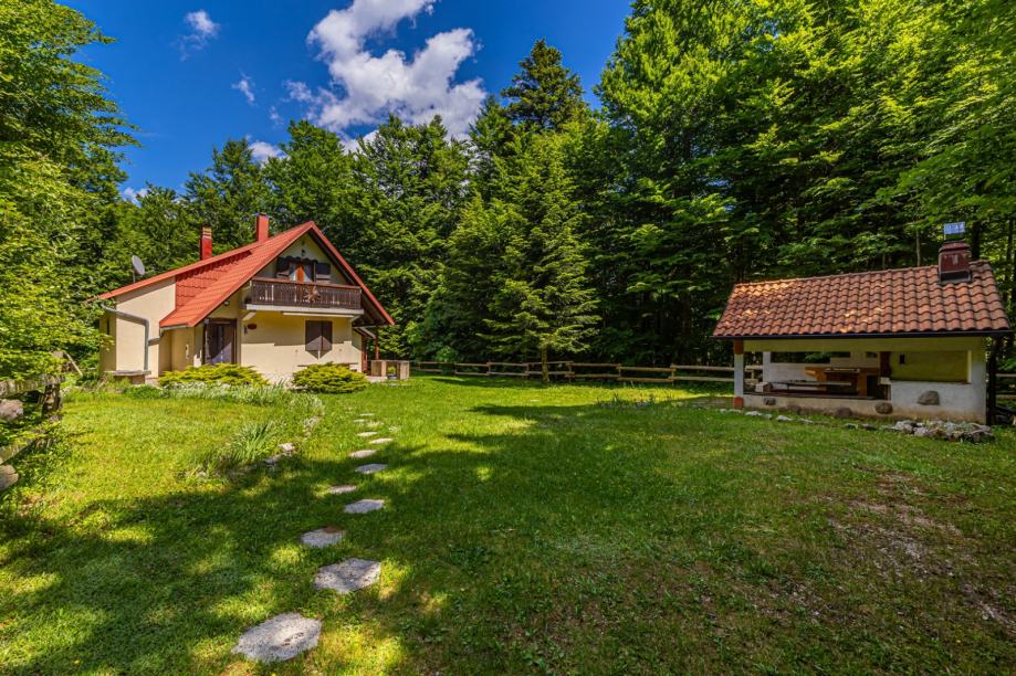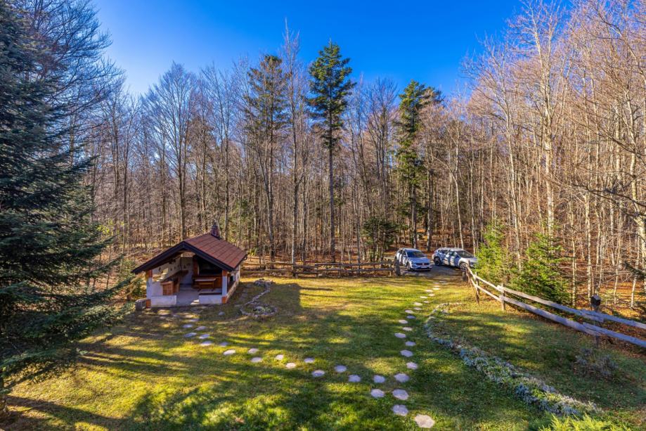 Kuća se nalazi na prostranoj parceli, okruženoj netaknutom šumom, a opet udaljena svega 200 metara od asvalitirane ceste.