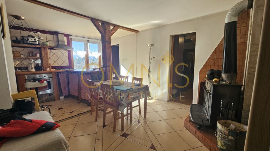 Etaža kuće u visokom prizemlju sastoji se od dvije spavaće sobe, dnevnog boravka, kuhinje sa blagavaonom, kupaone i hodnika. Visoko potkrovlje se može urediti po vlastitoj želji u dodatne spavaće sobe ili prostoriju za odmor i druženje. Suteren koji je u kamenu također se može urediti u dodatnu prostoriju ili konobu. Kuća ima novi krov te djelomično obnovljenu fasadu koja zadržava njezinu autentičnost. Uz samu kuću nalazi se garaža i natkriveni parking.