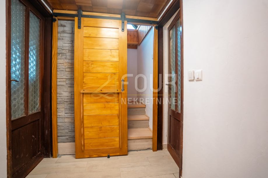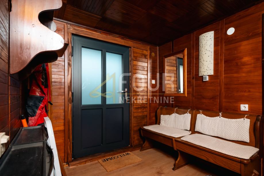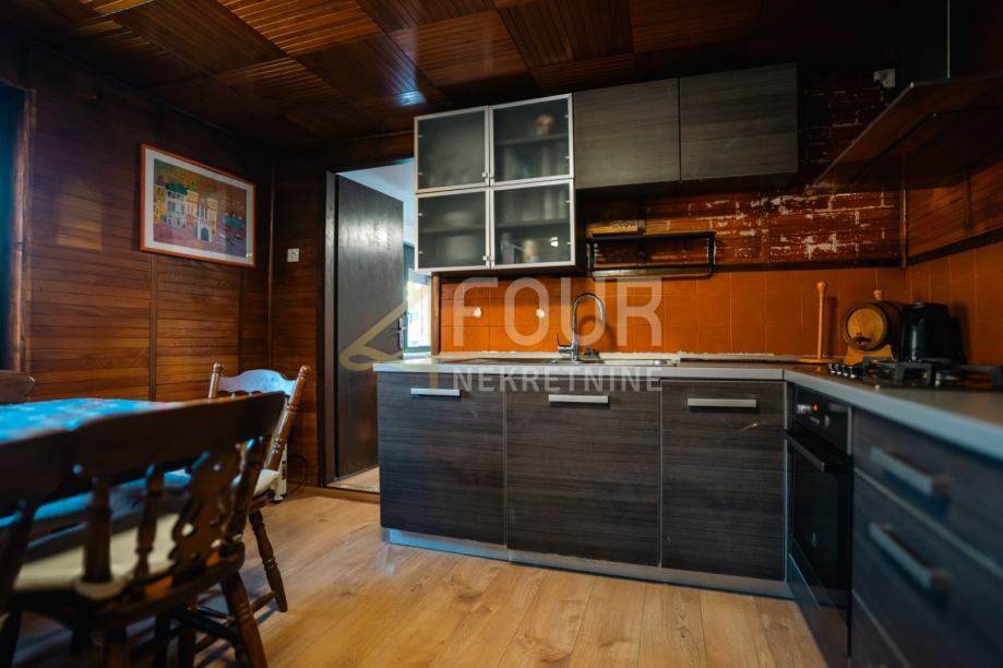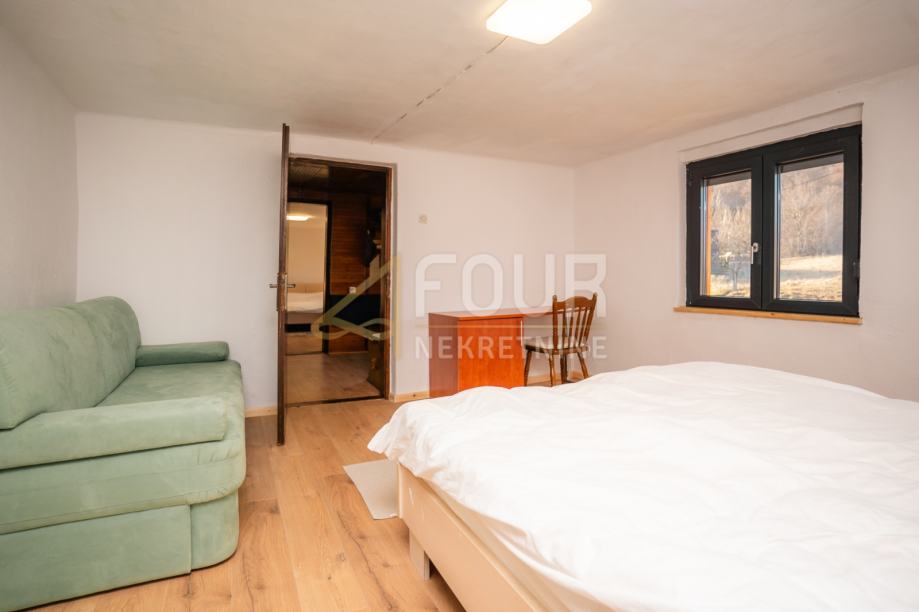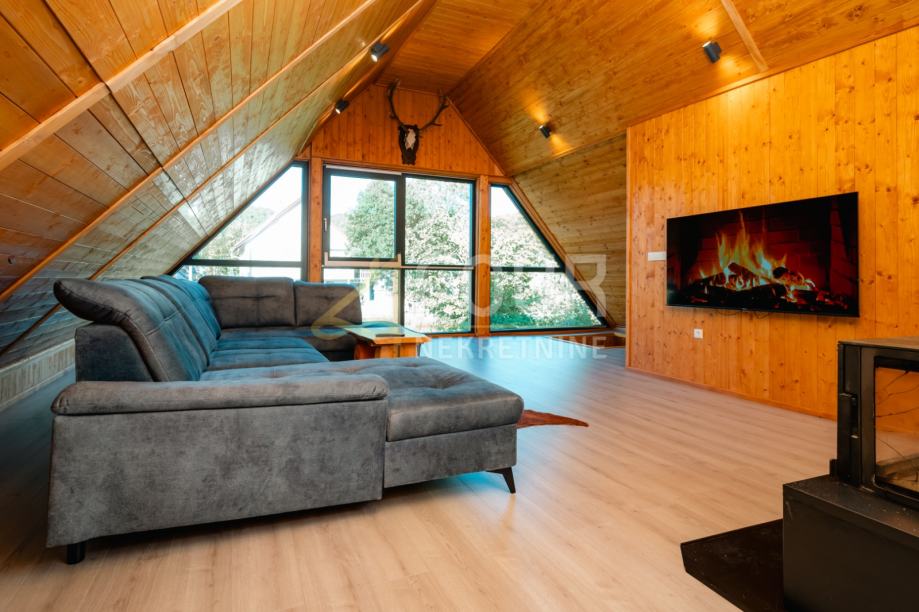 Prodaje se samostojeća kuća ukupne stambene površine 200 m², koja se sastoji od suterena, prizemlja i visokog potkrovlja. Smještena je na parceli od 2.417 m², od čega 1.819 m² okućnice čini livada.